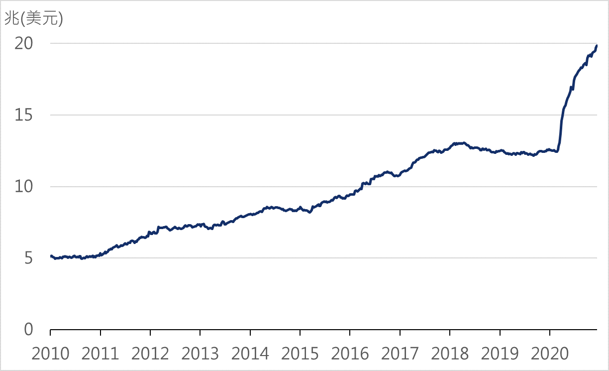 歐洲央行 (ECB) 12月決議加碼5000億的寬鬆貨幣政策,有助於實體經濟發展及保持金融市場流動性。依照目前購債政策,預計2021年底資產負債表將達到近8兆歐元規模。