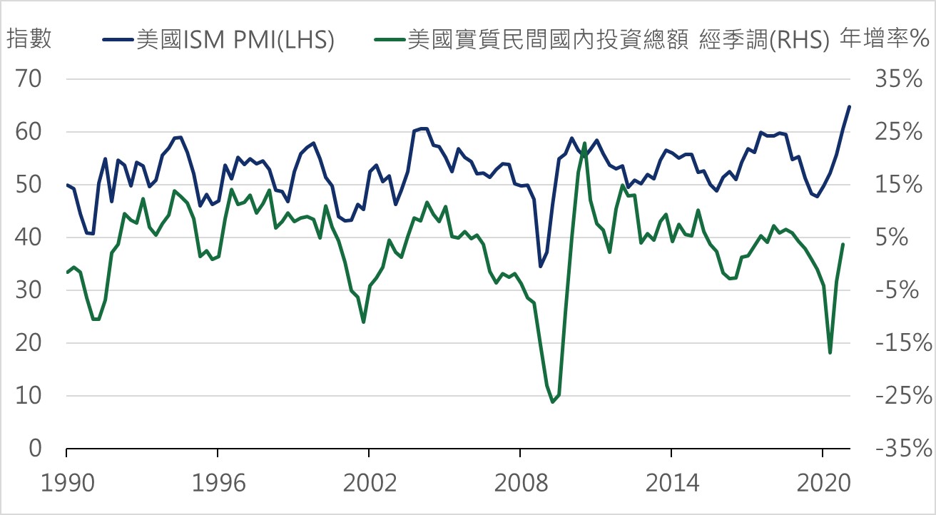 過去成熟市場擔任較大的消費者角色,在持續的刺激政策與生活恢復下,消費需求持續回溫,但過去承擔較多原物料與製造產出的新興市場在疫情尚未控制以及運輸緊張之下,造成產出缺口持續擴大的狀況,因此就今年來看,供不應求的狀況到了白熱化的階段。整體而言,疫情影響全球產出的期間可能長達一到兩年,此缺口在疫後需要相當時間填補,所以未來供不應求的狀態將維持至少半年到一年的狀況可能性大。