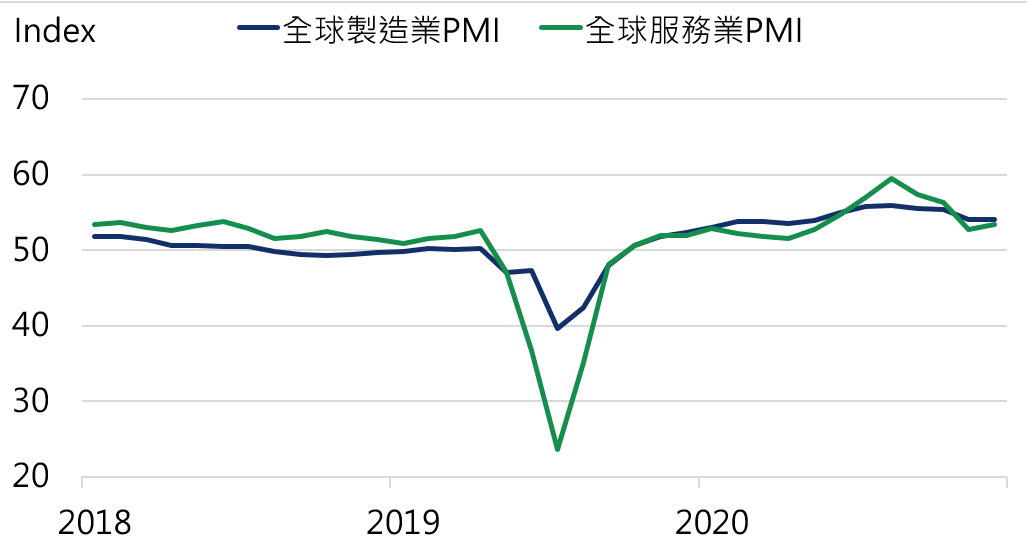 中國因能源轉型、天候異常以及海外需求強勁推升製造業快速復原,導致電力供不應求,9月進行限電措施,10月經濟數據明顯走弱,中國官方開始進口煤礦,且承諾電力供給不短缺,預期10月開始電力生產陸續回升,工業應可有序復原,惟高耗能產業仍面臨減產壓力,因此整體生產面仍面臨短缺風險。東南亞雖然疫情回落,但是工廠復工速度不如預期,使生產復原速度依舊落後,因此全球零售端庫存依舊偏低。供應鏈斷鏈導致生產恢復緩慢,進而推升價格走高,本次全球景氣循環明顯擺脫海嘯後的通縮年代,此外,在生產重置、疫後再投資需求以及勞工短缺等多項因素,全球經濟步入通膨循環。