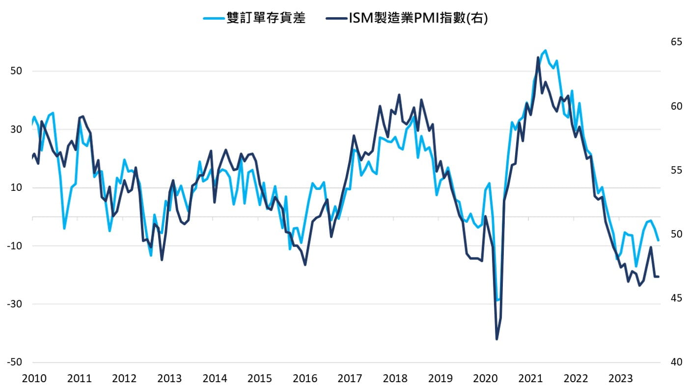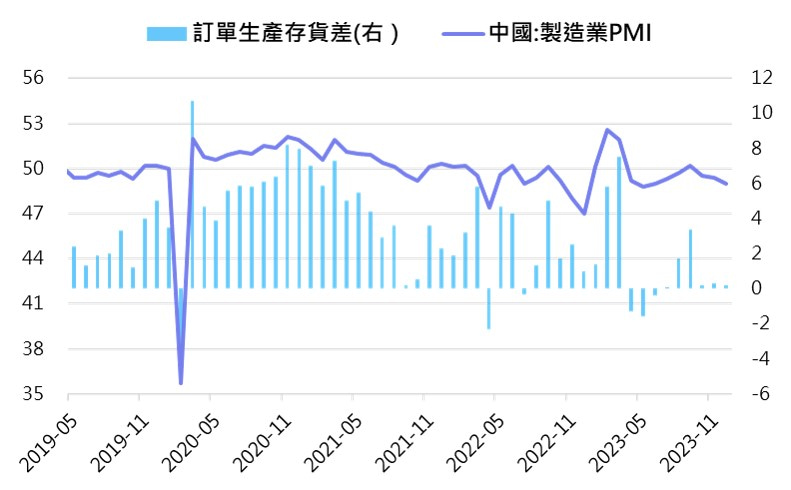 全球製造業自在2021/5~2022年多數時間受庫存調整、需求減弱趨勢放緩,2023年初起逐漸回升,但回升過程較為波折(2Q受歐美銀行事件衝擊及中國疫後復甦低於預期回落,3Q改善後10月受Fed貨幣政策不確定影響回降,11月再走升)。 惟整體而言,預計進入2024年,製造業景氣將進一步回暖,因:1)預計歐美需求將持續隨通膨持續滑落而改善;2)中國需求將開始受惠於就業市場年初以來改善的滯後及累積效過;3)主要國家庫存皆已來到低位;4)WTO貿易晴雨表顯示全球貿易實質數據持續回暖中。