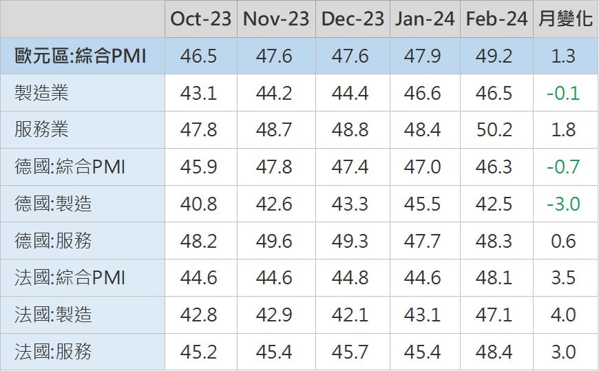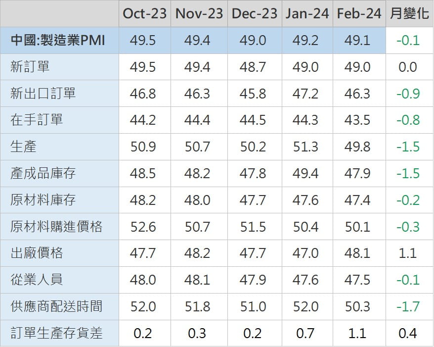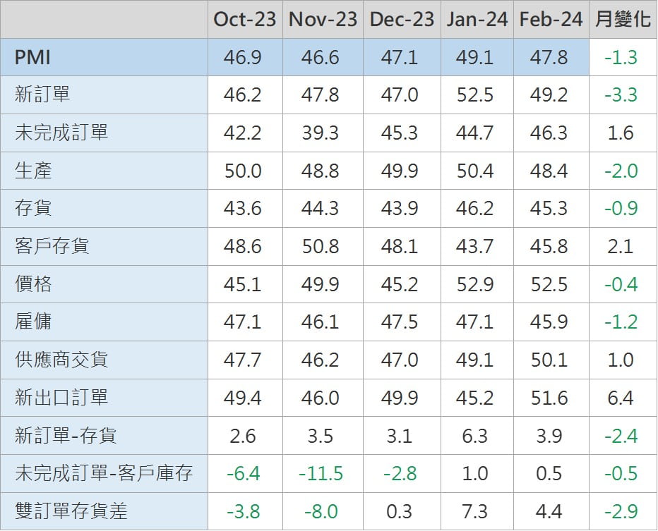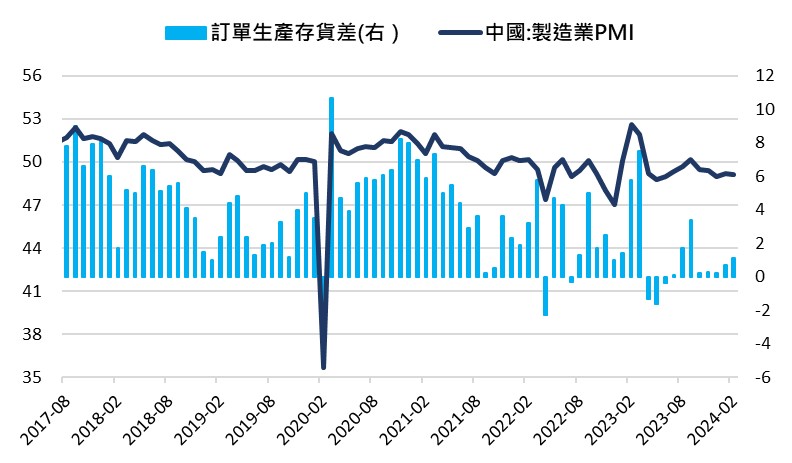 全球製造業自在2021/5~2022年多數時間受庫存調整、需求減弱趨勢放緩,2023年初起逐漸回升,但回升過程較為波折(2Q23受歐美銀行事件衝擊及中國疫後復甦低於預期回落,3Q23改善後10月受Fed貨幣政策不確定影響回降,去年11月起至今再走升)。整體而言,預計進入2Q24,製造業景氣將進一步回暖,因:1)預計歐美需求將持續隨通膨持續滑落而改善;2)主要國家庫存皆已來到低位;3)WTO貿易晴雨表顯示全球貿易實質數據持續回暖中;4)AI趨勢帶動企業資本投資。