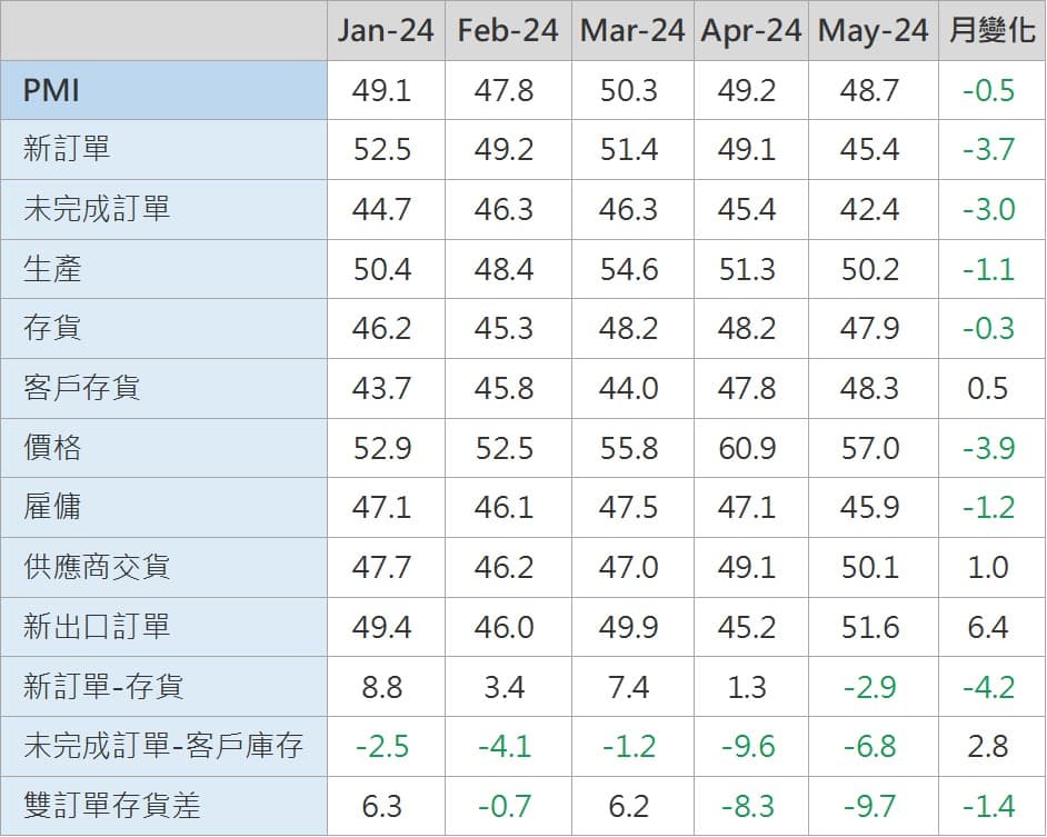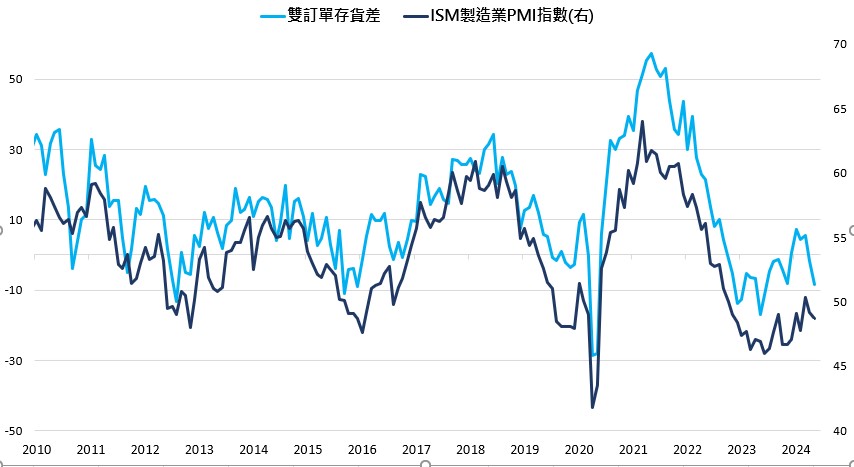 全球製造業自在2021/5~2022年多數時間受庫存調整、需求減弱趨勢放緩,2023年初起逐漸回升,但回升過程較為波折(2023 2Q受歐美銀行事件衝擊及中國疫後復甦低於預期回落,2023 3Q改善後去年10月受Fed貨幣政策不確定影響回降,去年11月起至今再走升)。 整體而言,預計在2024年製造業景氣將進一步回暖,因:1)預計歐美需求將持續隨通膨持續滑落而改善;2)主要國家庫存皆已來到低位;3)WTO貿易晴雨表顯示全球貿易實質數據持續回暖中;4)AI趨勢帶動企業資本投資。