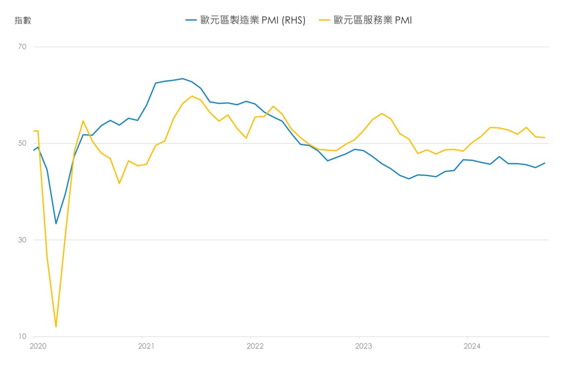 ● 10月歐元區PMI偏弱但小幅改善,服務業表現持續優於製造業