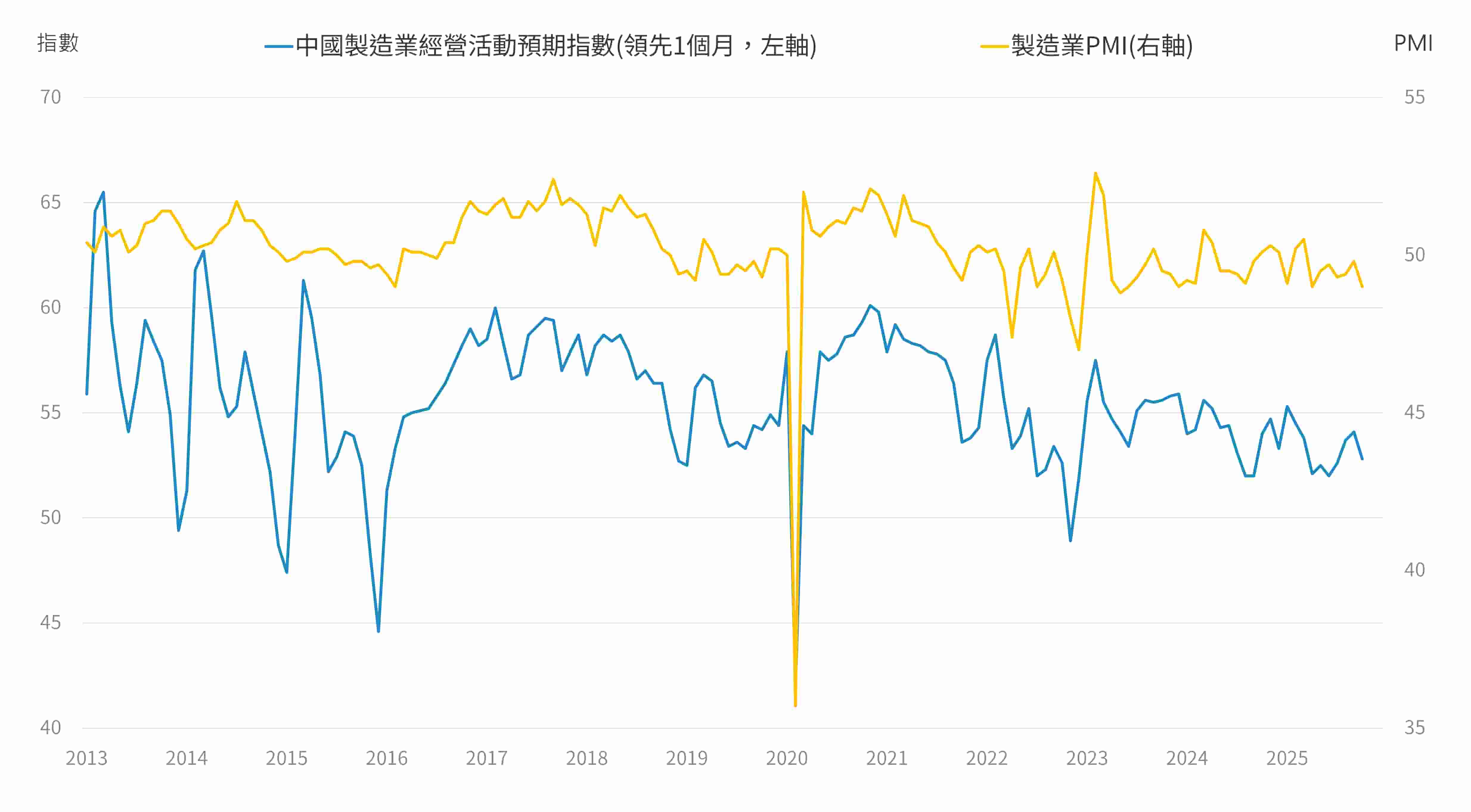 中國10月主要經濟數據呈現動能減緩,生產/出口/投資偏弱,然消費動能有所回升,顯示經濟正經歷結構轉換。美中分別針對大豆與稀土放寬限制後預計衝突減緩,年底前中國將推出一項新的「準財政」金融工具,向數位經濟和人工智慧等新興產業投資 5,000 億元人民幣。