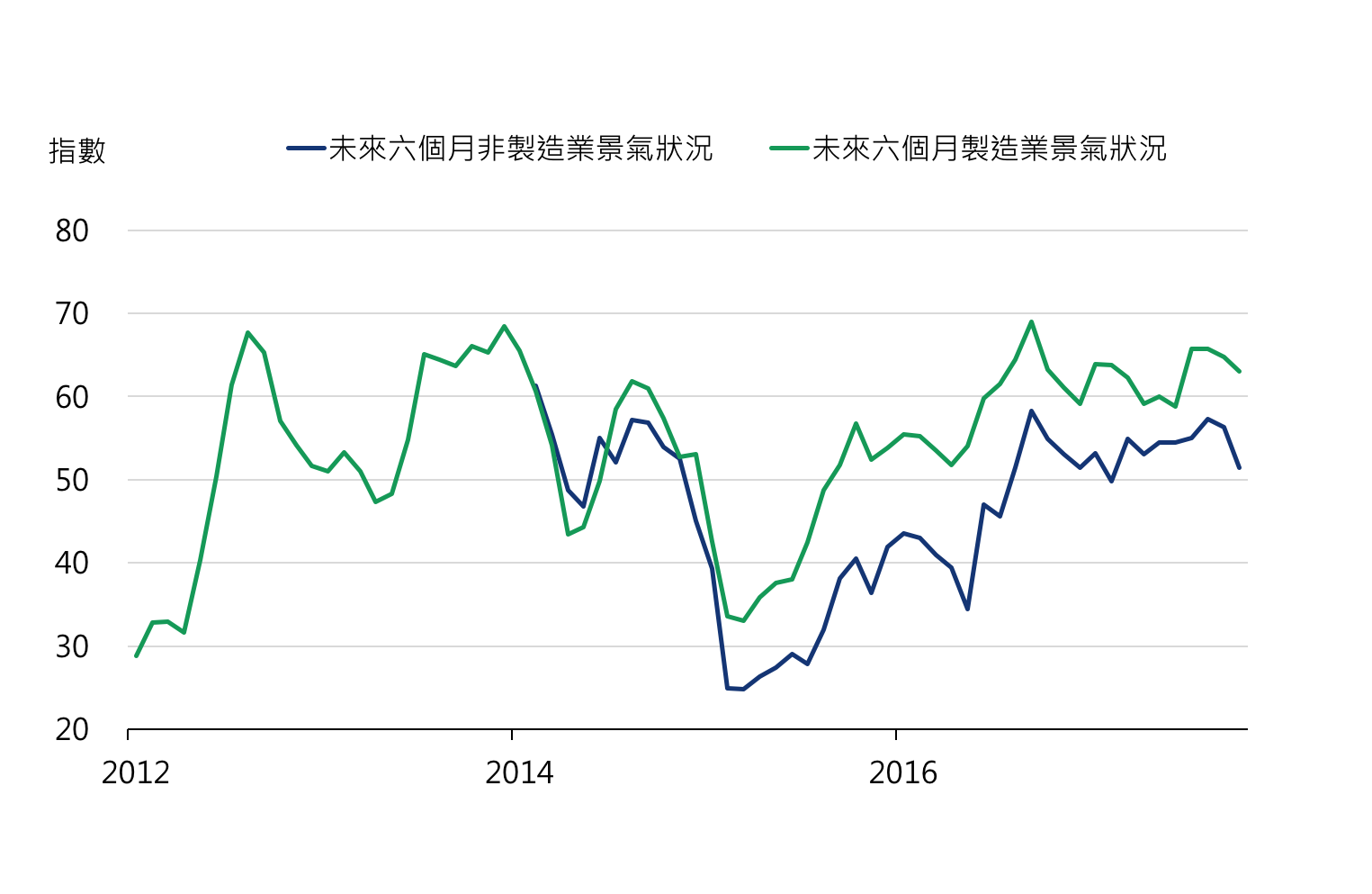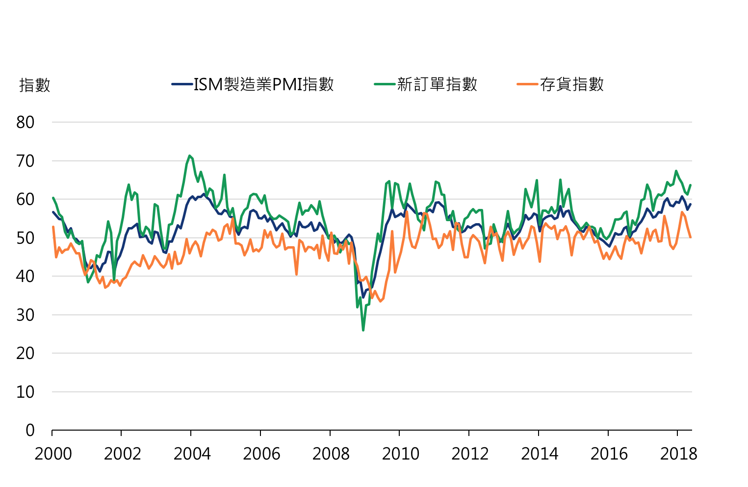 繼1~2月稅改推升企業信心後,美國製造業採購經理人指數一度在3~4月走弱,連2月下滑後在5月回升,其中新訂單及生產分項皆位於快速擴張區間,加上整體指數維持成長之產業數目維持高檔,顯示製造業整體活動仍保持健康步伐;近期訂單存貨差回升,核心資本財訂單(不含飛機的非國防訂單)亦呈加速,皆顯示景氣無虞,企業將逐漸開始有補庫存動作出現。