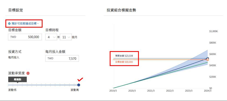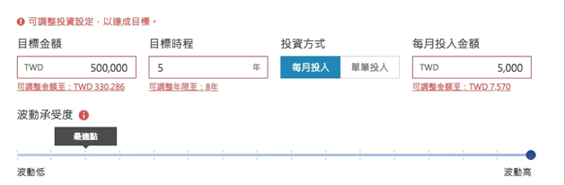 若你在投資的過程中,覺得投資波動還是太大(或太小)時,智能理財皆可以幫你調整投資組合來適應投資波動!