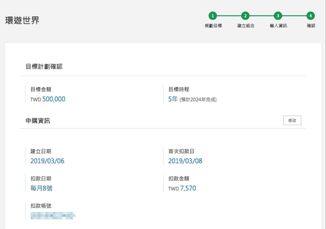 好吧,我就調高定期定額扣款金額到他指定的剛好金額,目標金額與年限皆不變!