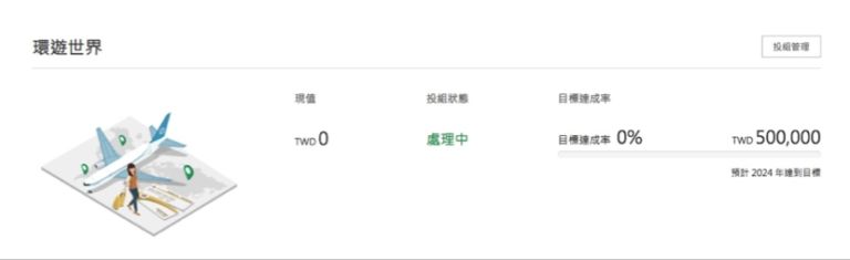 首先是先來設定你要想智能理財為你達成什麼樣的投資目標,像小黑我想要統治地球,所以當然是選擇環遊世界囉。 (蛤?)