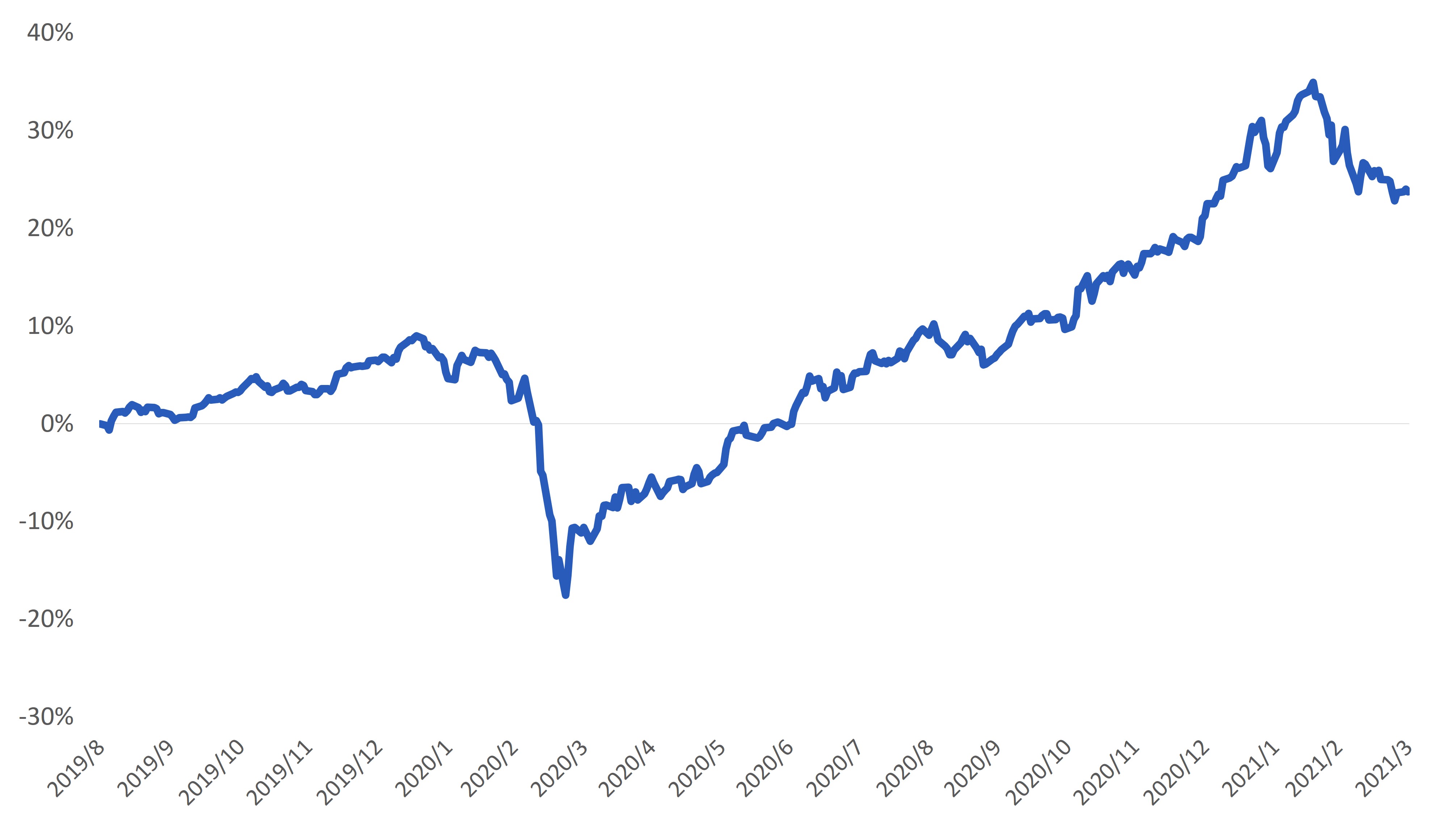 景氣穩定復甦,但類股輪動引發市場震盪:美國總統拜登簽署1.9兆美元紓困法案,且景氣復甦帶動循環性類股走強,然通膨預期與公債殖利率攀升,引發金融市場震盪加劇,壓抑科技股表現,所幸政策等利多題材未見消除,支撐股市震盪上漲。