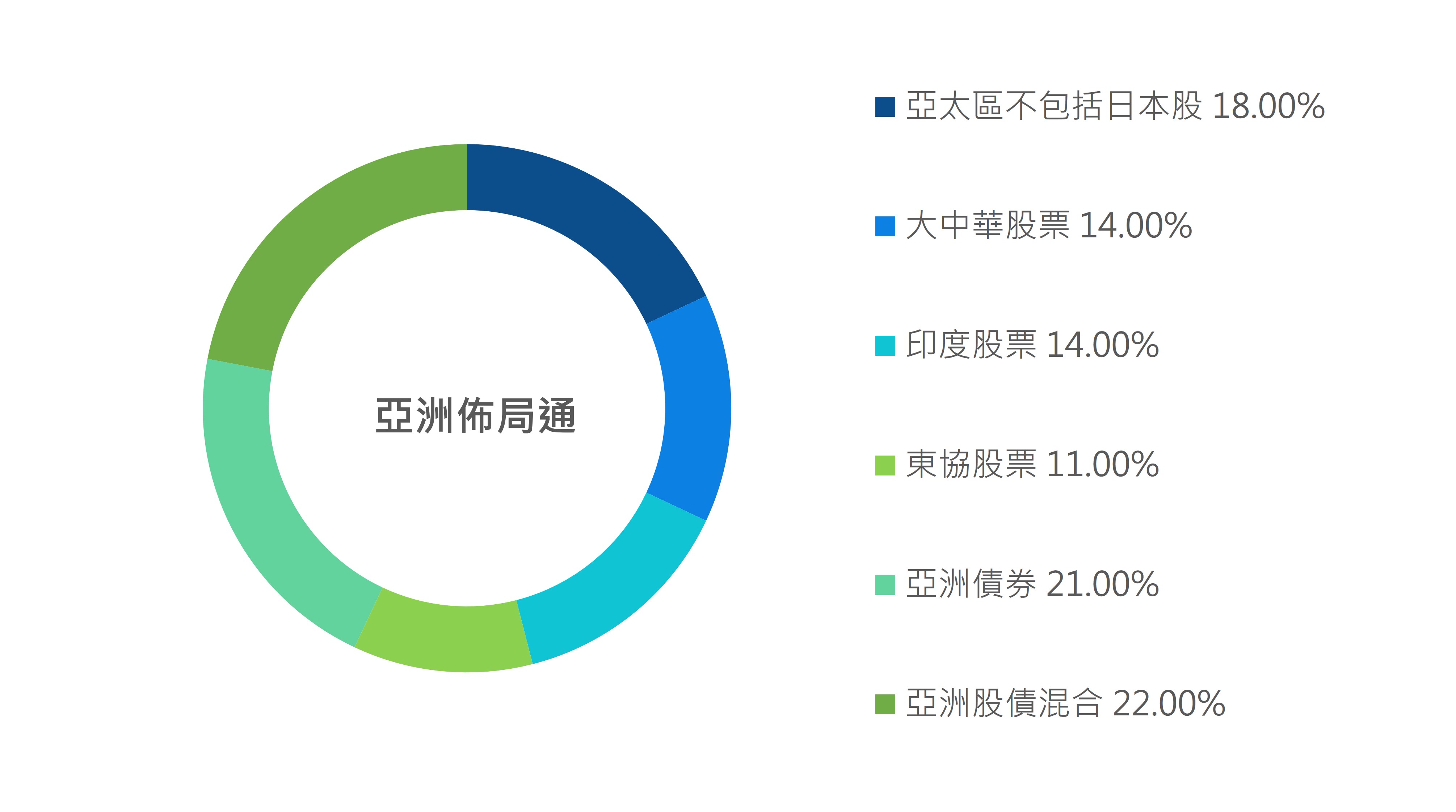 企業財報表現亮眼,帶動亞洲風險性資產不畏通膨攀升疑慮所影響,多數止跌回揚,10月份投資組合上漲0.65%。「東協股票」在疫情緩和與資金回流下,本月漲幅度最大,「亞太不包括日本股票」與「大中華股票」次之。「印度股票」表現疲弱,基金偏成長股的投資帶來負面貢獻,「亞洲債券」則受到房產商違約等負面問題衝擊,資金流出導致亞債重挫,拖累投資組合表現。