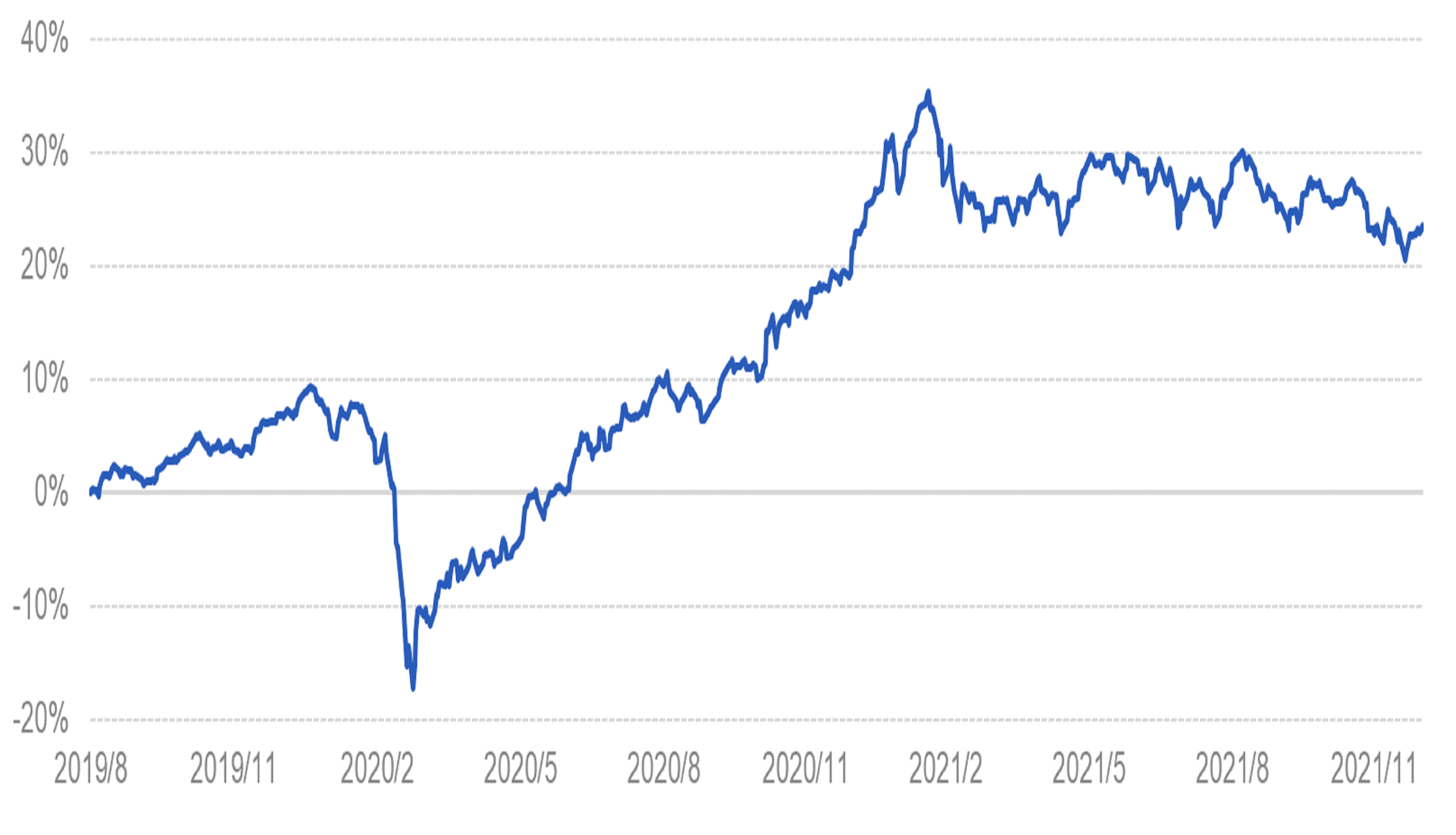投資組合2021全年上漲0.57%,優於績效指標的-3.12%。年初受疫苗施打普及,加上各國財政刺激,為市場注入樂觀情緒,投資組合由「大中華股票」、「亞洲不包括日本股票」及「東協股票」領漲。第二季「東協股票」、「印度股票」維持強勢,但受中國監管政策影響,及中國地產商債務問題波及,「大中華股票」、「亞洲不包括日本股票」及「亞洲債券」遭受拖累。年底因通膨高漲、升息壓力及疫情利空復燃,亞洲資產普遍下跌,回吐年初漲幅。