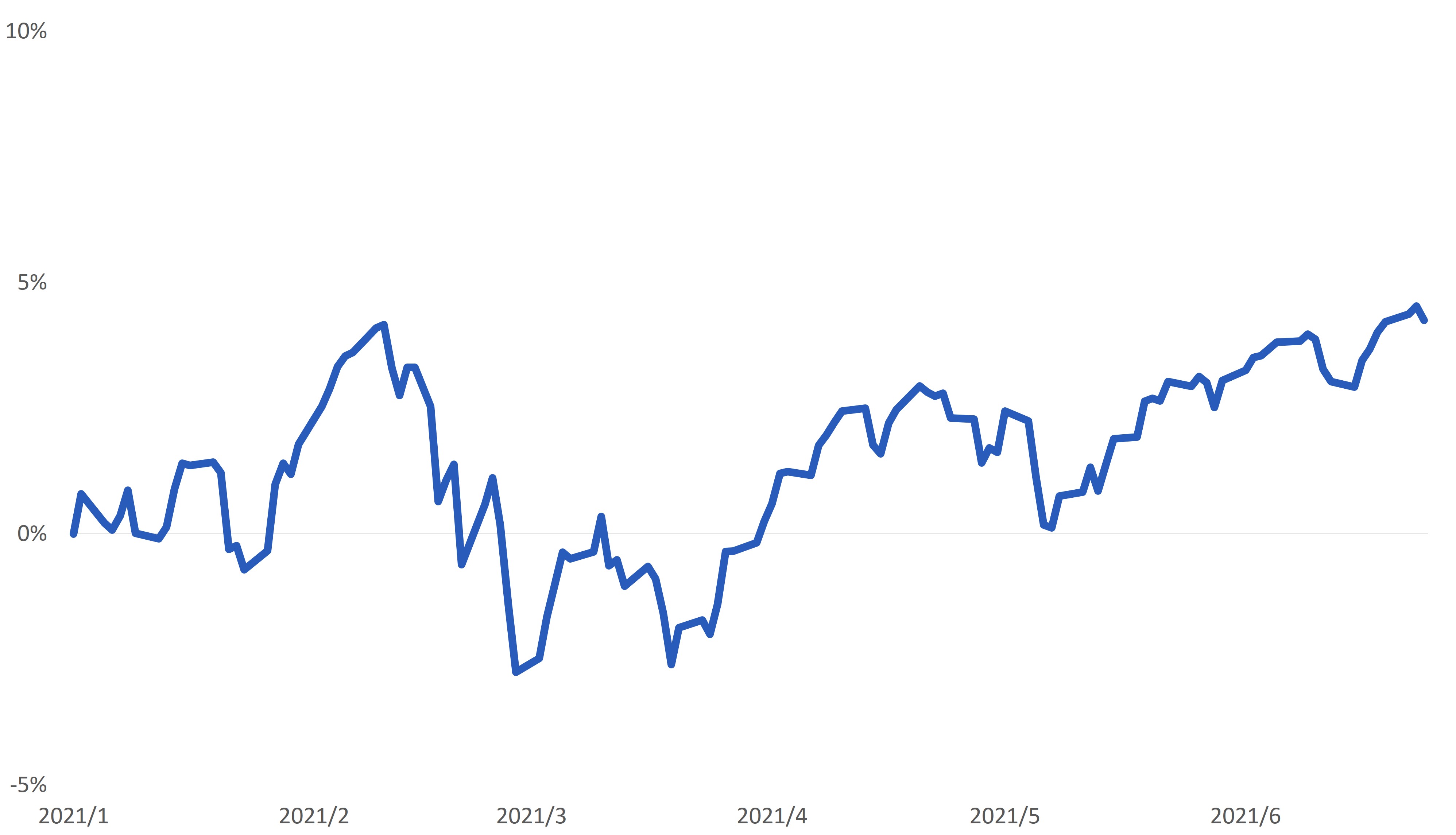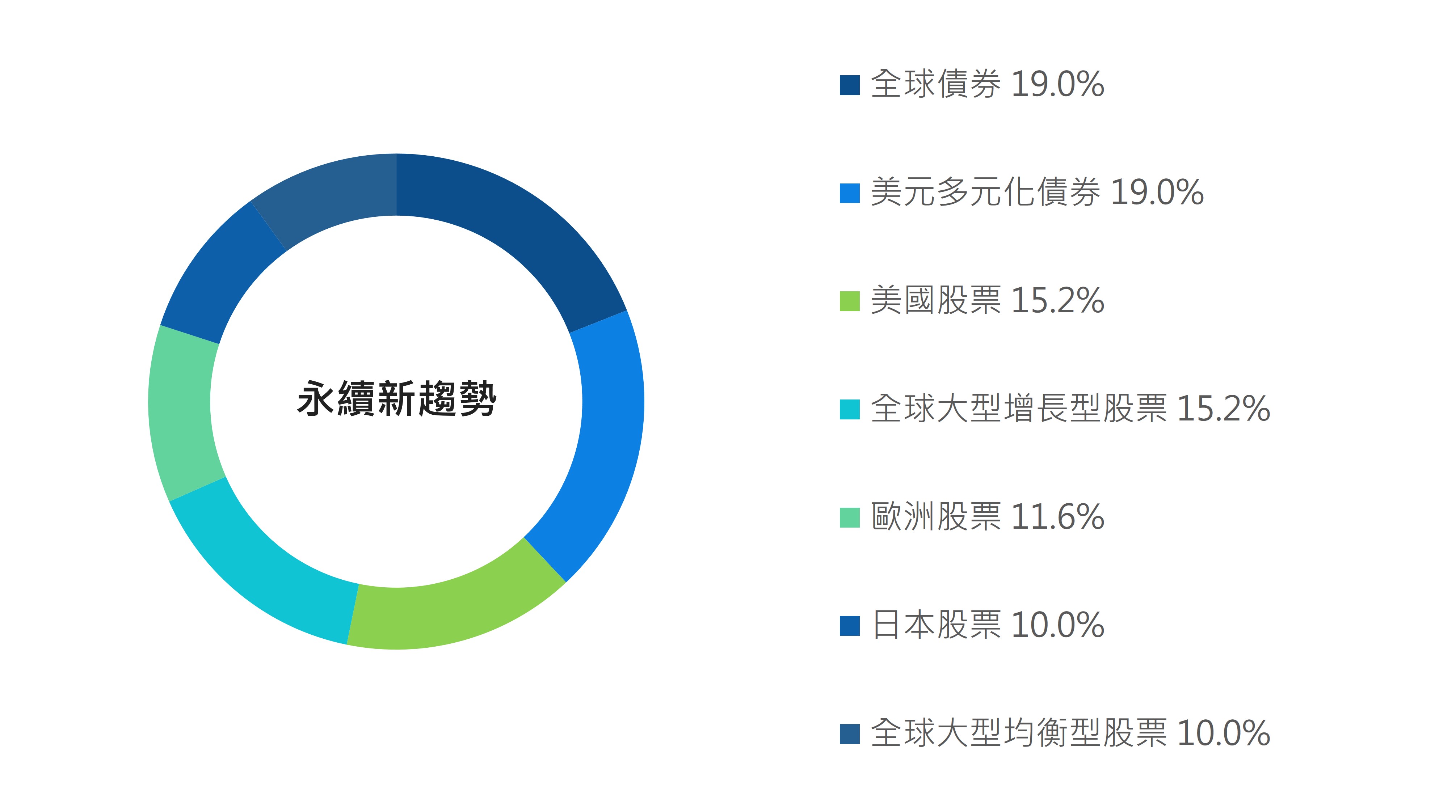 觀察疫苗施打及政策變化:整體股市處於歷史高檔,市場風格、類股輪動的可能性仍高。「永續新趨勢」投資組合維持股6債4的資產配置,透過成長與價值風格、投資區域的分散佈局來因應波動,並觀察隨疫苗施打率對經濟活動的變化,與主要國家財政貨幣政策進程,做為調整投資組合的重點。