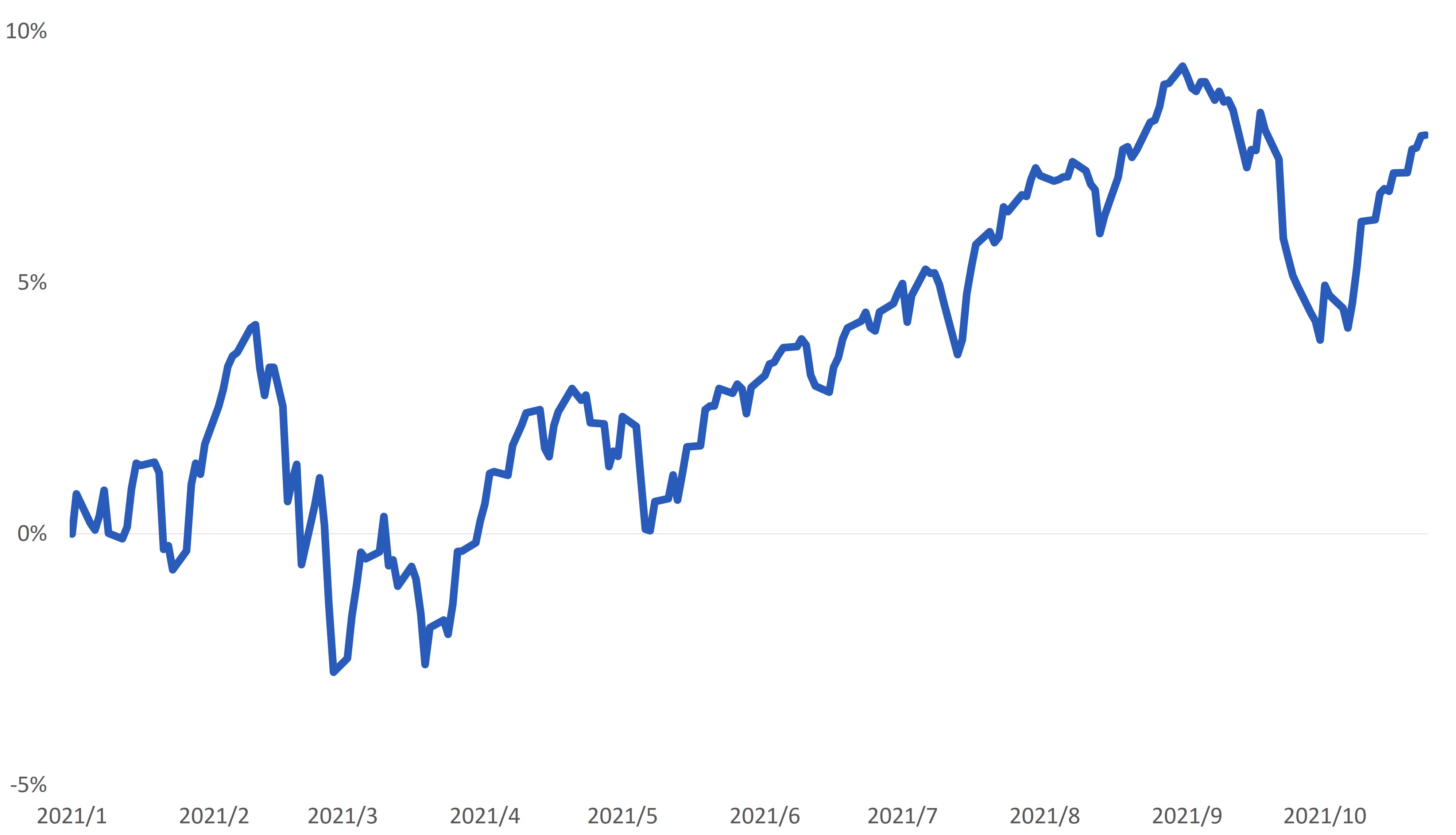 Fed將在11月宣布Taper細節,並自12月開始逐步實施縮債至明年中QE退場。然,過去數個月通膨持續高於Fed 2%目標,Fed官員密切觀察物價是否會如預期在明年開始回落,若當前高通膨仍持續,聯準會升息可能早於市場普遍預期。短期通膨及政策走向不確定性仍高,市場仍具波動。
