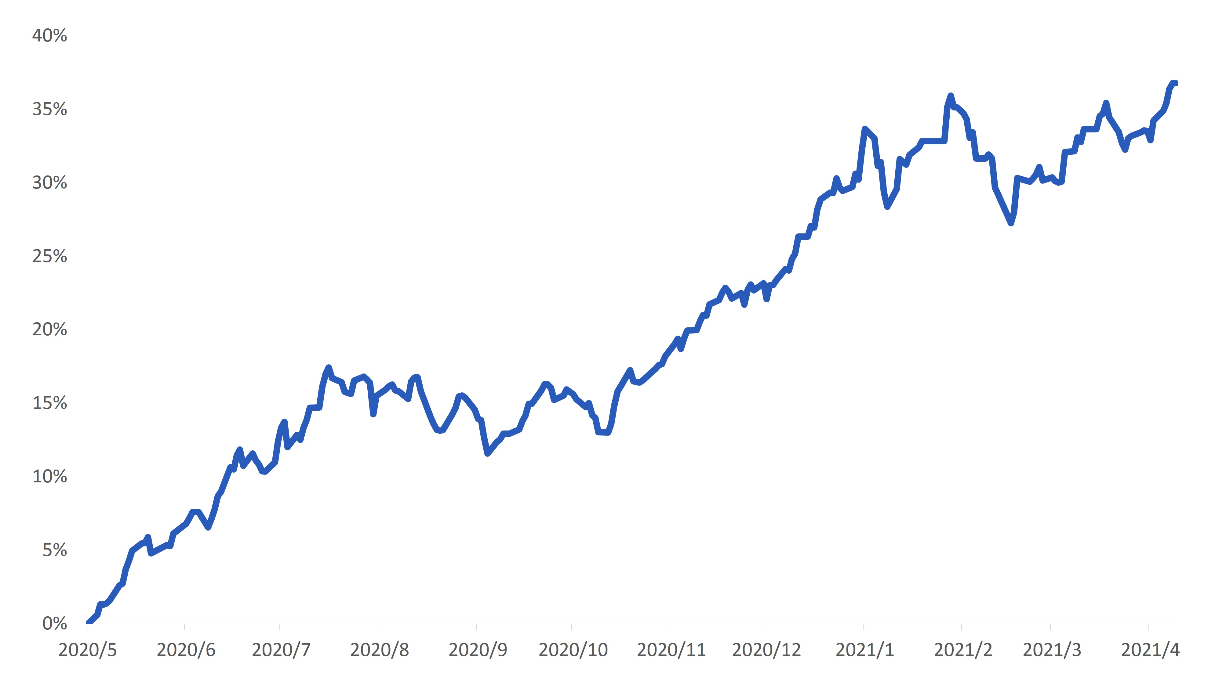 全球經濟顯露復甦態勢:儘管市場預期短線通膨上揚,但全球經濟逐步回溫,且各國央行寬鬆基調不變,股票等風險性資產持續震盪走高。近期美元相對弱勢,及經濟復甦預期,同支撐新興股市走高。