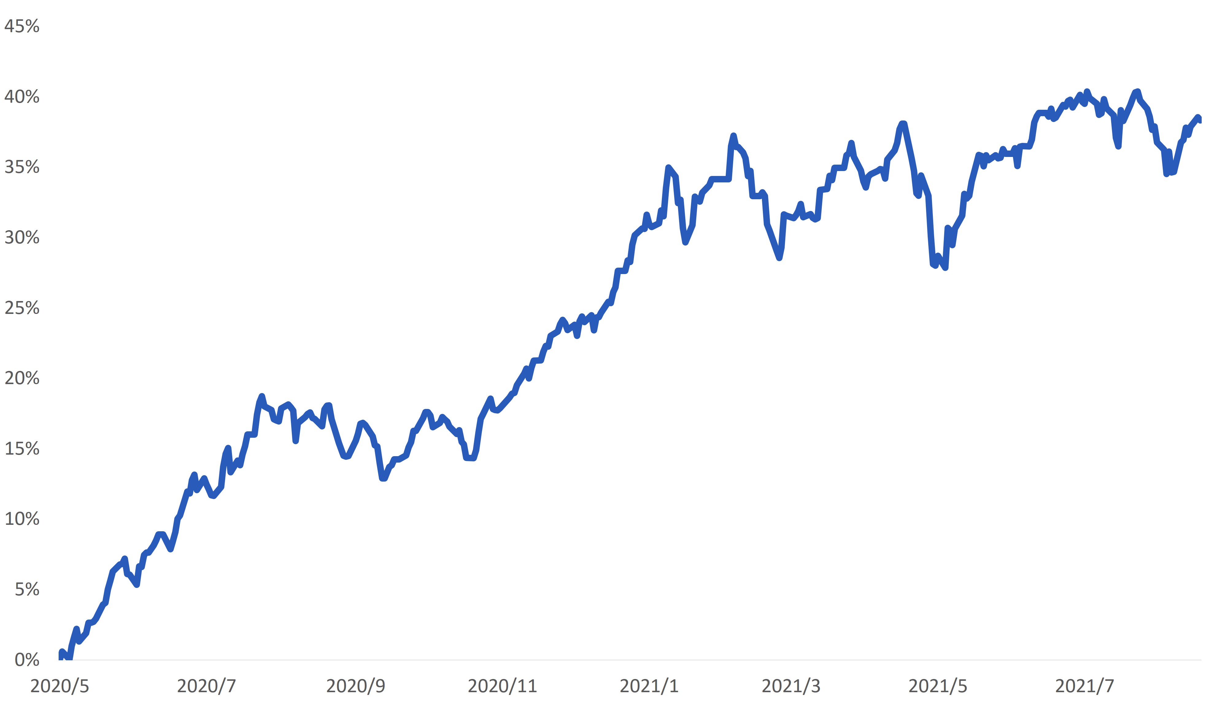 三個月 2.51% 六個月 5.11% 一年 20.54% 年初至今 10.69% 成立至今 38.34%