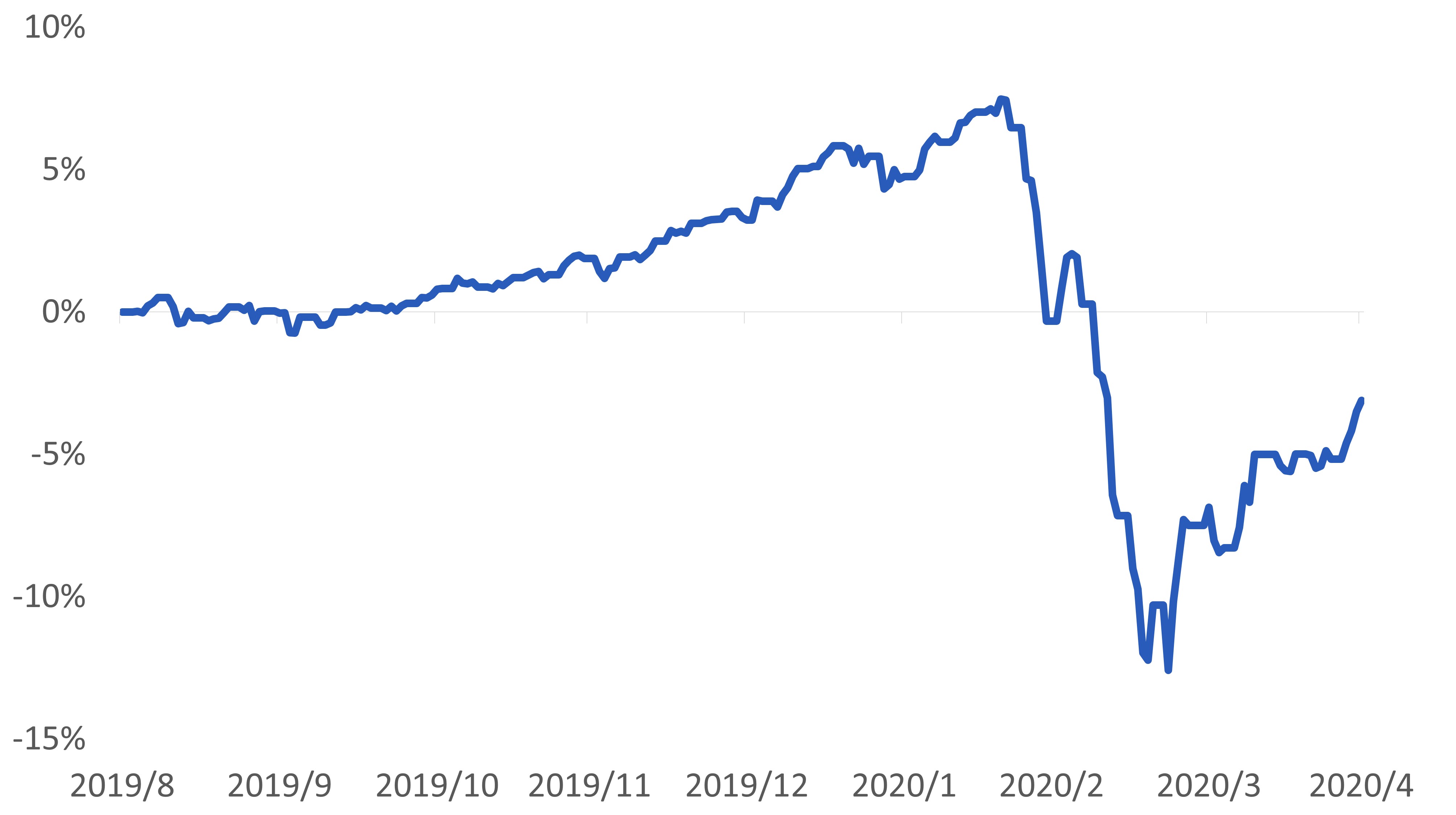 疫情稍緩,股債上漲:歐美疫情稍見緩和,多國政府陸續釋出解封計畫,並持續提出購債、紓困等政策,以挽救經濟。股債受惠上述題材,4月持續反彈,連帶提振「全球Fund手中」投資組合績效。