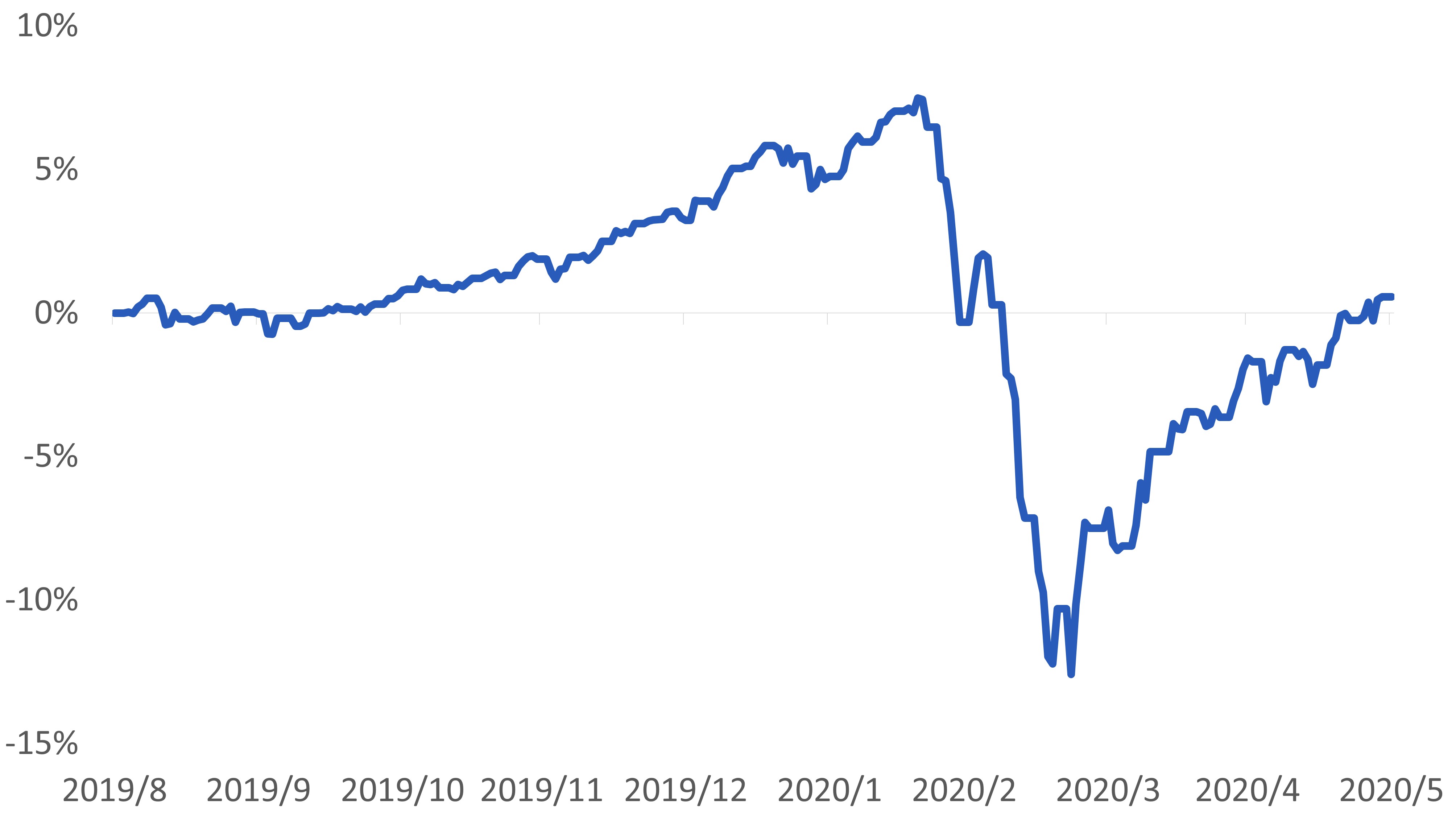 重啟經濟推動大盤漲勢:為加快恢復經濟活動,歐美各地紛紛放寬封鎖措施,市場對於後續經濟動能不致悲觀,具成長概念的美國大型網路科技類股表現亮眼,亦推升股市上漲。