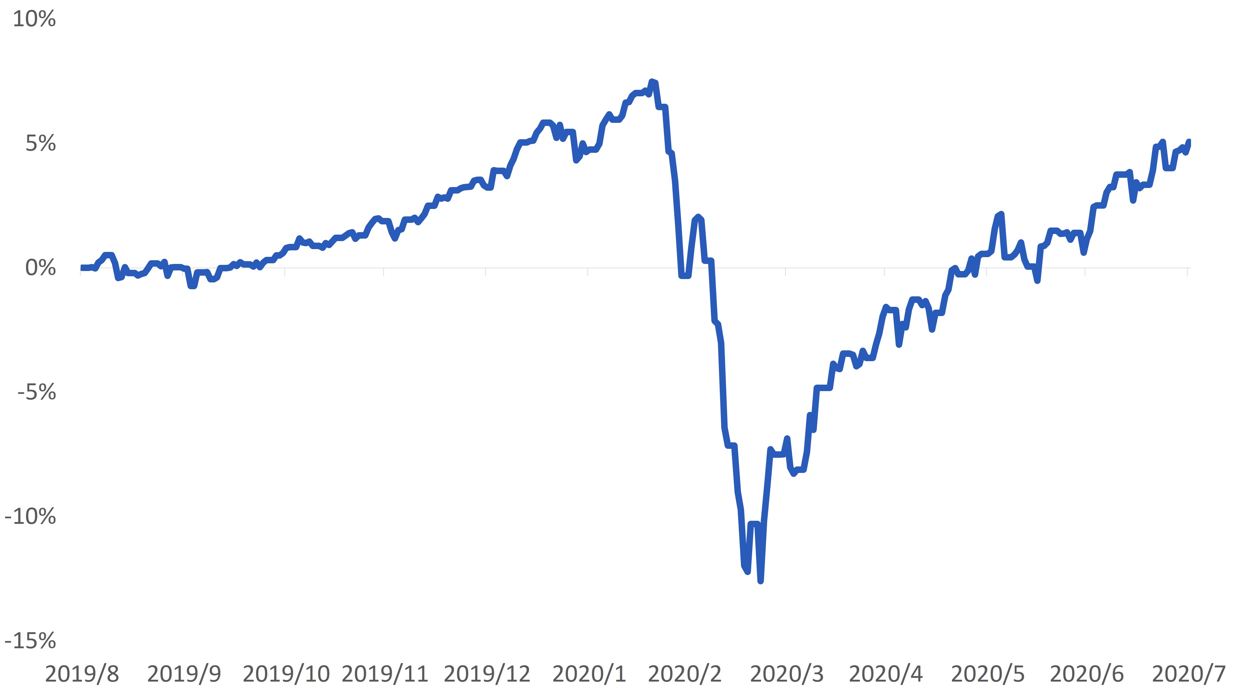 本季投資組合調整資產配置,將新興市場當地貨幣債券轉入匯率風險較低之新興市場美元債券,並加碼受惠經濟反彈之全球高收益債。投資組合七月持有資產類別全數提供正報酬。所選全球股票涵蓋科技及網路類股,成為投資組合績效最大貢獻來源。全球與美國綜合債券則受惠經濟不確定性、貨幣寬鬆環境與政策加碼預期,仍有不錯表現。