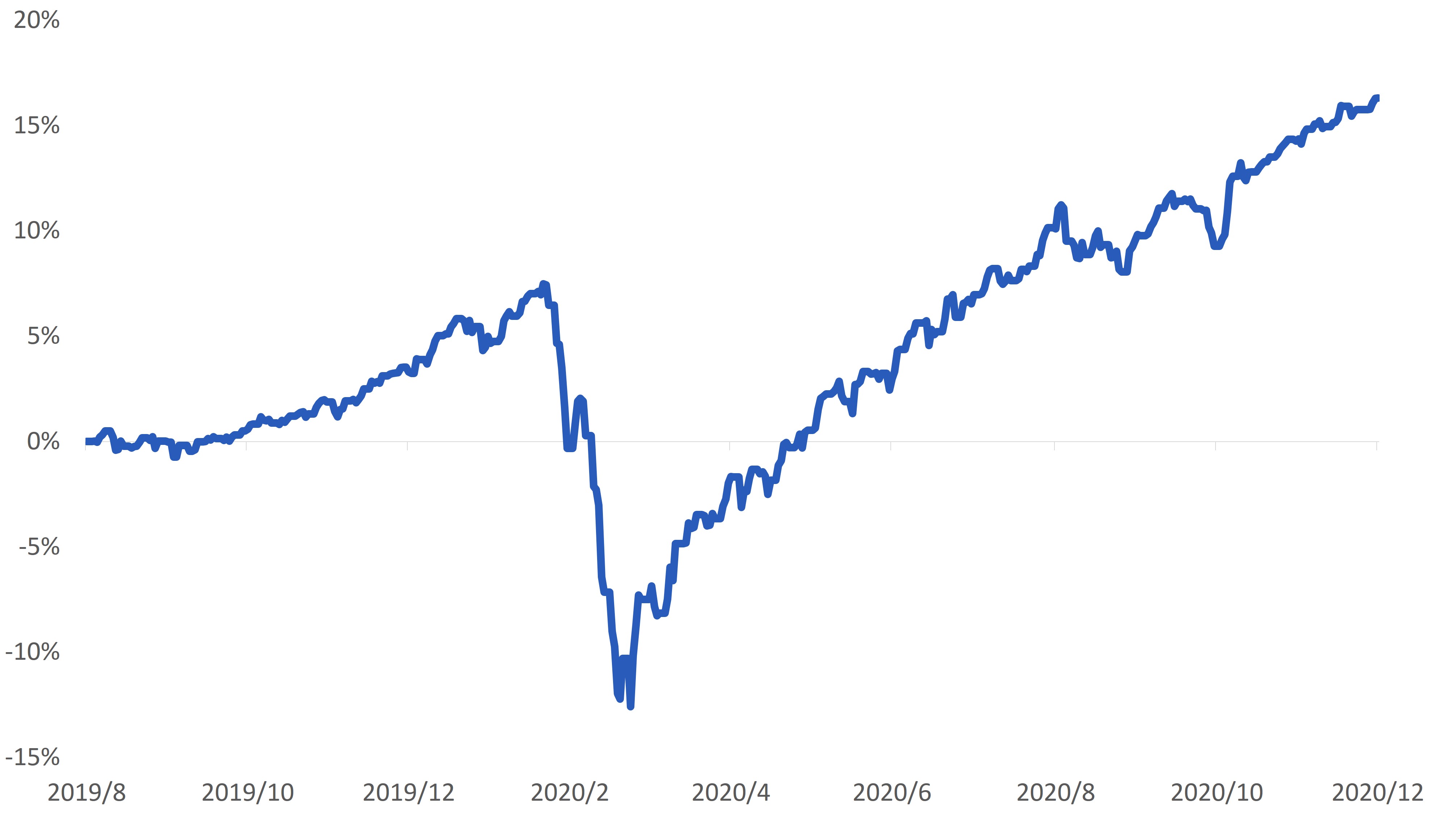 美國經濟有望重回正軌:美國疫情嚴峻,疫情演變勢必牽動美國股市漲跌。預期未來隨疫苗逐漸普及,經濟有望重回正軌,輔以低利率環境,資金將持續流入股市,有利美股延續多頭行情。