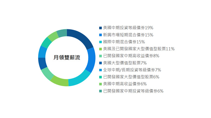 基金配息率不代表基金報酬率,且過去配息率不代表未來配息率,基金淨值可能因市場因素而上下波動;部分基金配息前未先扣除應負擔之相關費用,基金之配息可能由基金的收益或本金中支付,任何涉及由本金支出的部分,可能導致原始投資金額減損。部分基金每月/每季/每半年配息金額之決定是由境外基金機構根據已取得之資本利得及股息收益狀況,並考量基金經理人對於未來市場看法,評估預定之目標配息金額是否需調整,若基金因為市場因素造成資本利得及股息收益狀況不佳,將可能調降目標配息金額。基金配息組成項目表投資人可至基金總代理人網站上查詢。