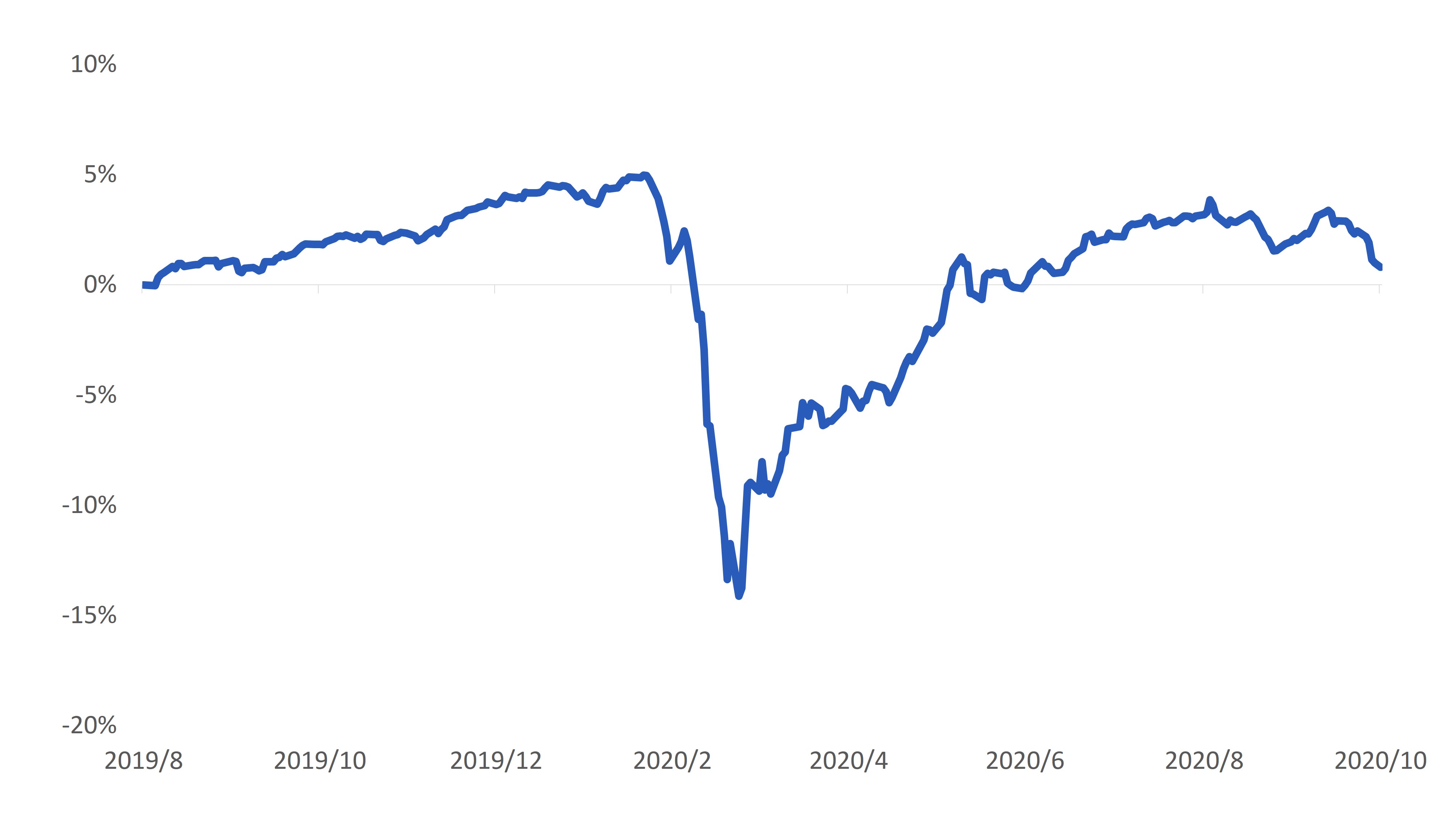股市持續震盪下跌:投資人持續關注美國紓困方案僵局,以及歐洲為因應新冠疫情,再度封城等措施,因而採取「風險規避」立場,轉而持有現金或債券部位,使股票市場延續前月跌勢。