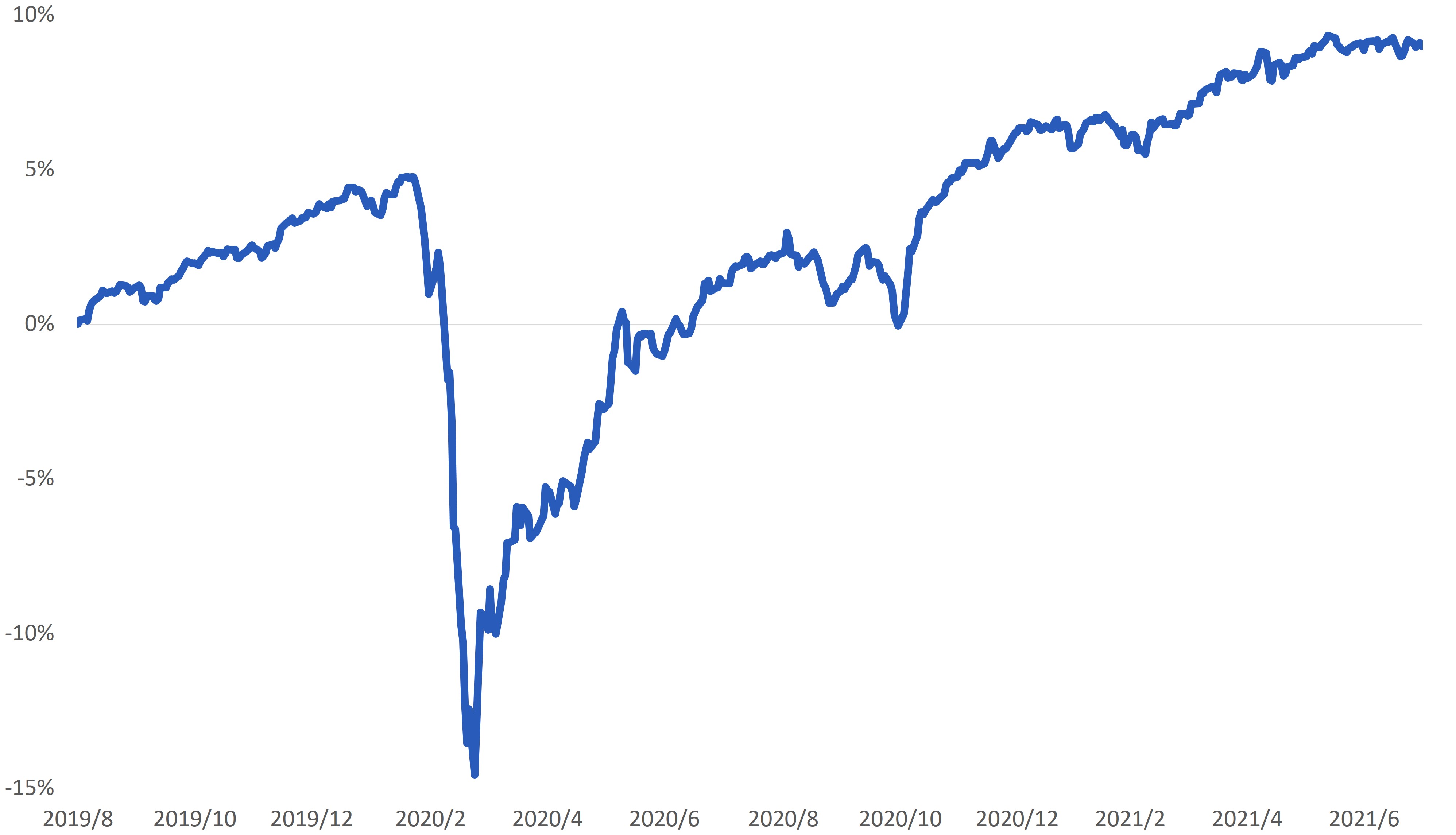 經濟財報強勁,變種病毒擴散壓抑股市表現:7月全球股市表現錯綜,全球成長股領漲,價值股稍微落後,新興市場股市則走跌。即便經濟成長及企業獲利強勁,然市場擔憂Delta變種病毒擴散恐削弱經濟復甦,而轉向高品質股及安全性較高的資產。