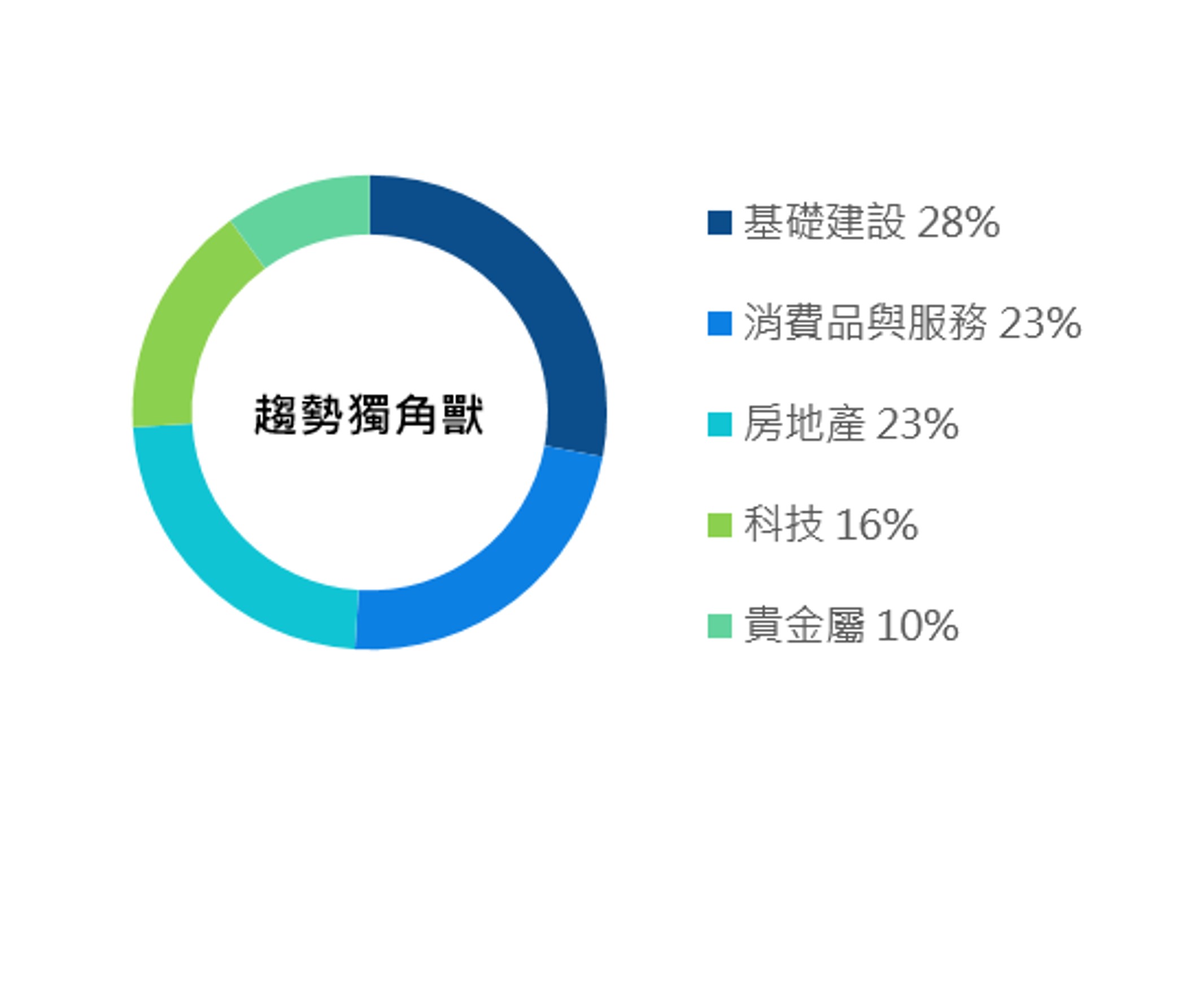 投資組合配置主要資產中,貴金屬產業受全球風險性資產回溫影響,表現相對落後;但消費品與服務、基礎建設、房地產、科技等族群表現不俗,為投資組合績效帶來正貢獻。