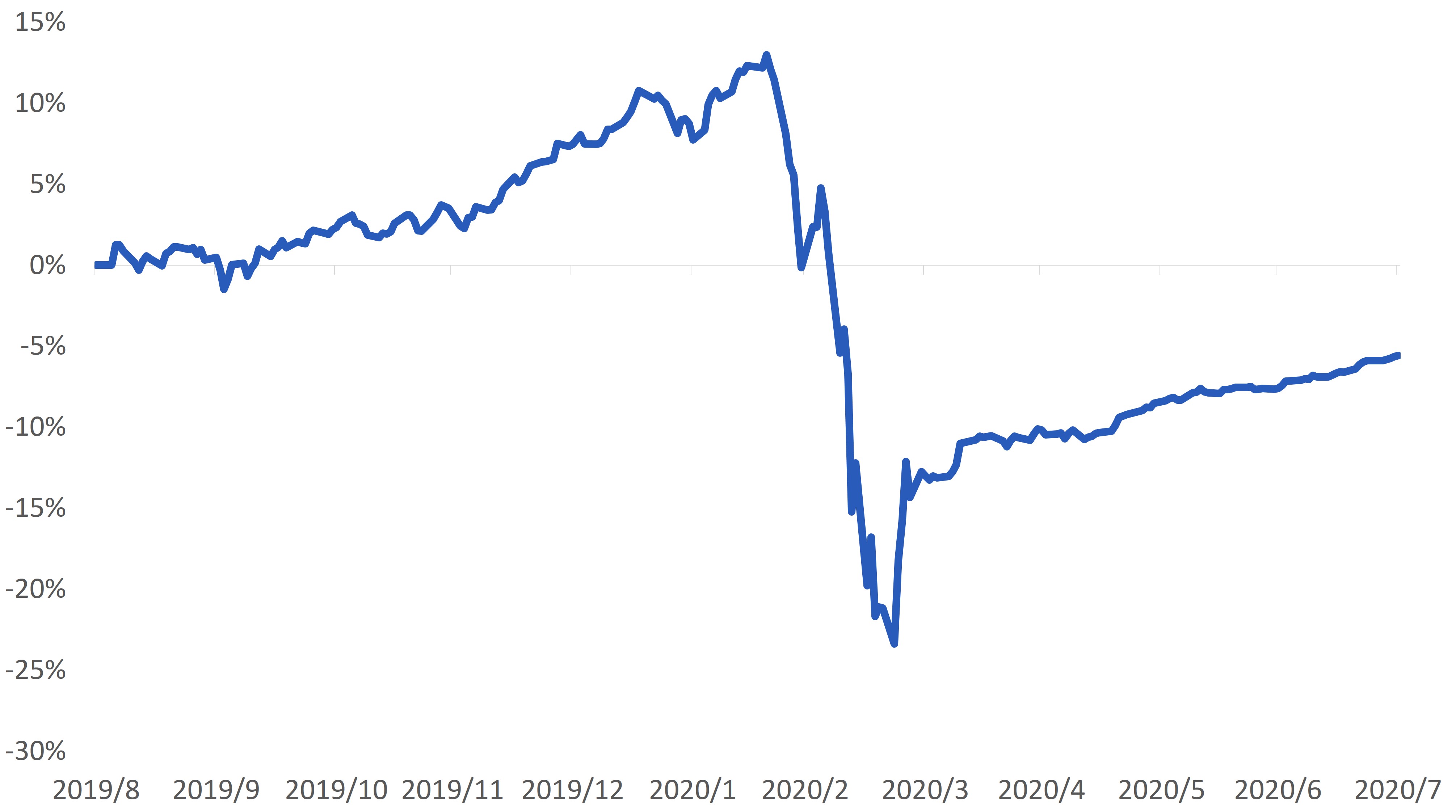 公司債表現優於政府債:七月份債券持續創造正報酬,因風險情緒提高,高收益債券績效當月表現最佳,而聯準會執行其公司債券購買計劃,公司債表現優於政府債。在疫情不確定性仍在,央行則保持極度寬鬆的貨幣條件下,固定收益標的如債券仍有可為。
