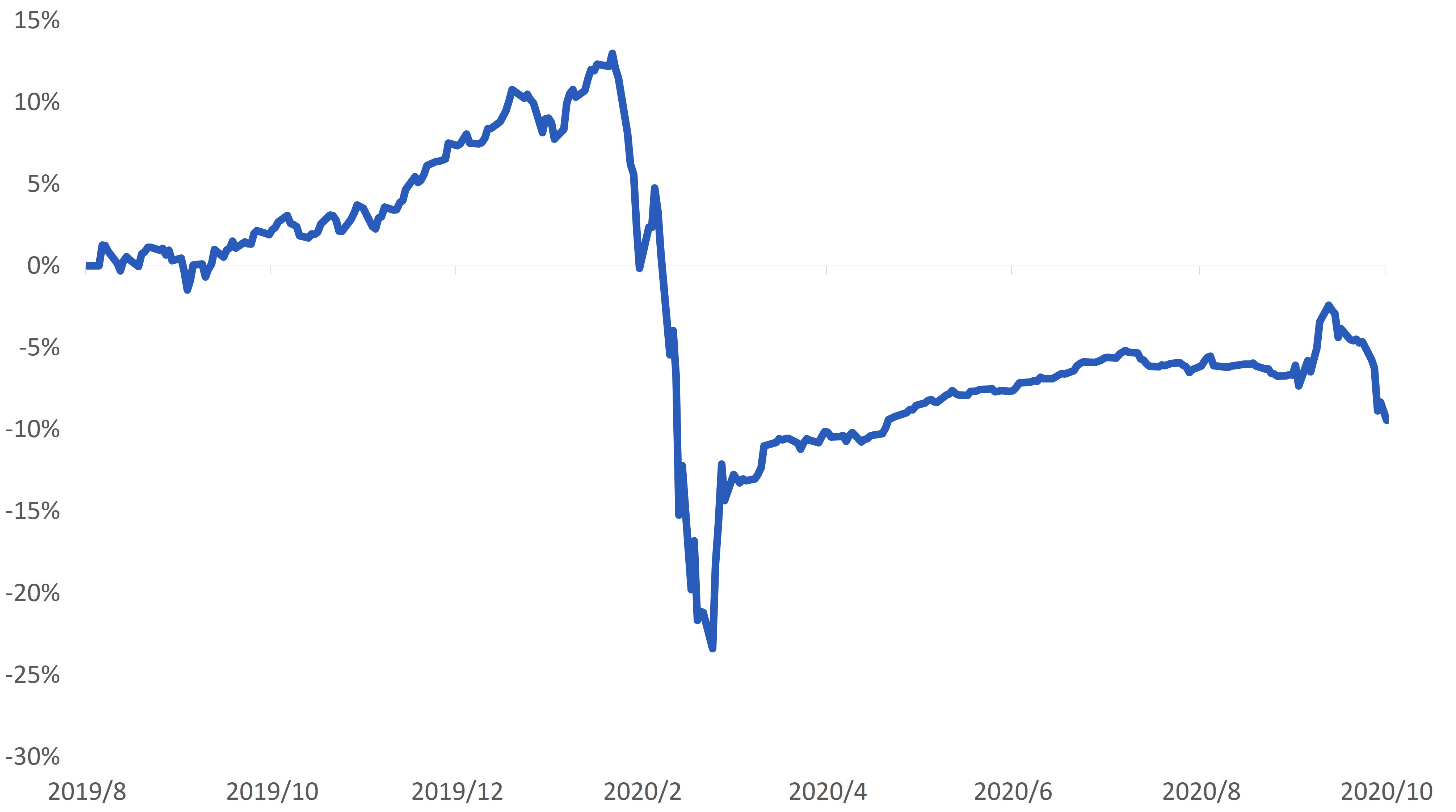 股市持續震盪下跌:投資人持續關注美國紓困方案僵局,以及歐洲為因應新冠疫情,再度封城等措施,因而採取「風險規避」立場,轉而持有現金或債券部位,使股票市場延續前月跌勢。