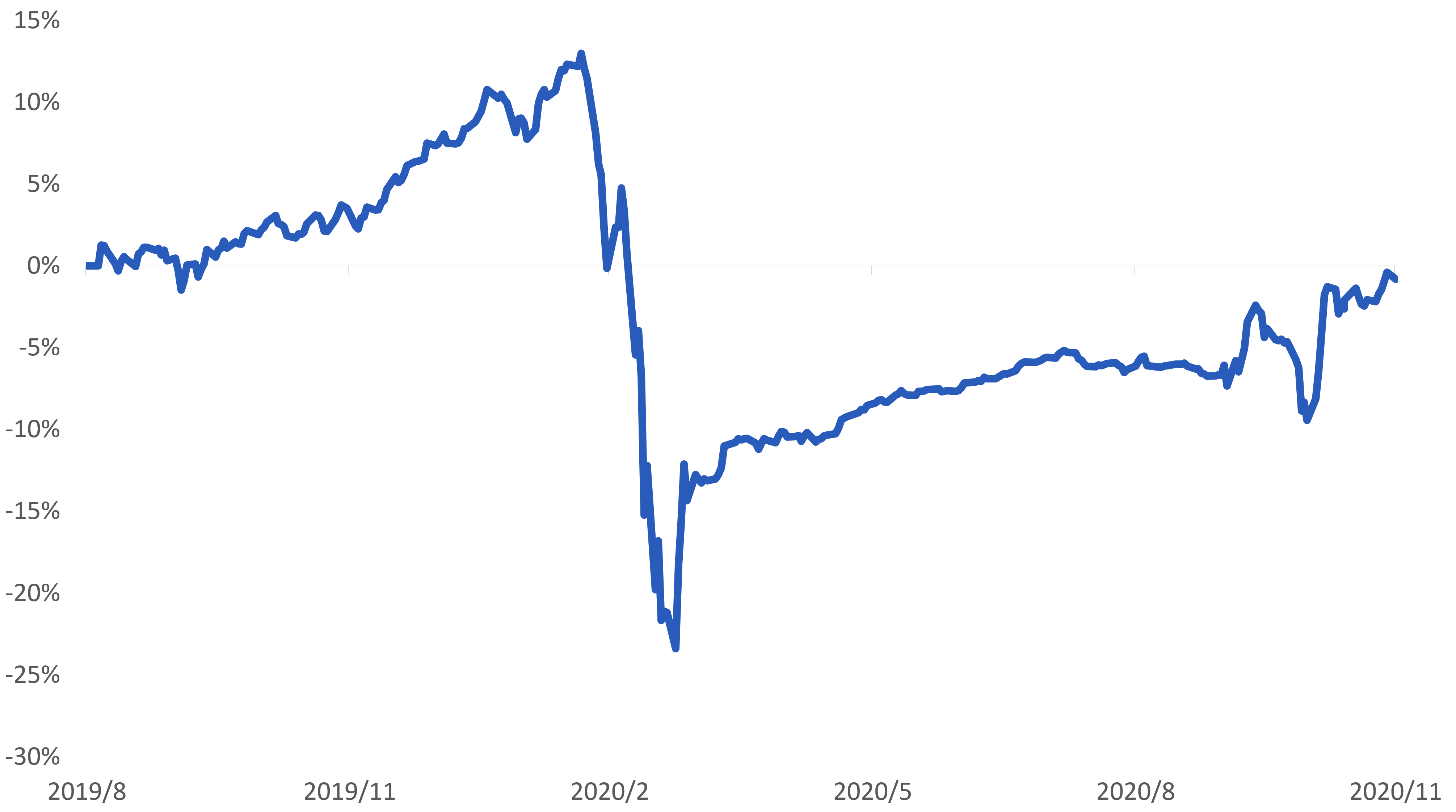 投資情緒樂觀,股市反彈:投資人對新冠疫苗發展、美國總統大選結果及弱勢美元等事件發展相對樂觀,使全球股債資產在11月出現反彈。