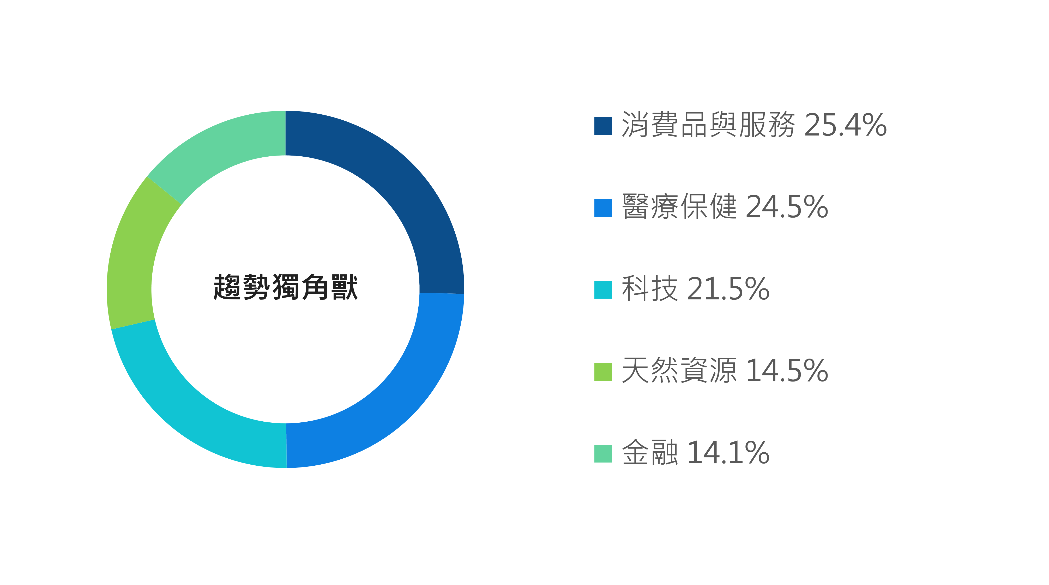 11月受惠全球股市上揚,「趨勢獨角獸」的主要產業股票布局為投資組合績效帶來正面助益,惟因市場避險情緒下降,貴金屬類股表現相對偏弱。