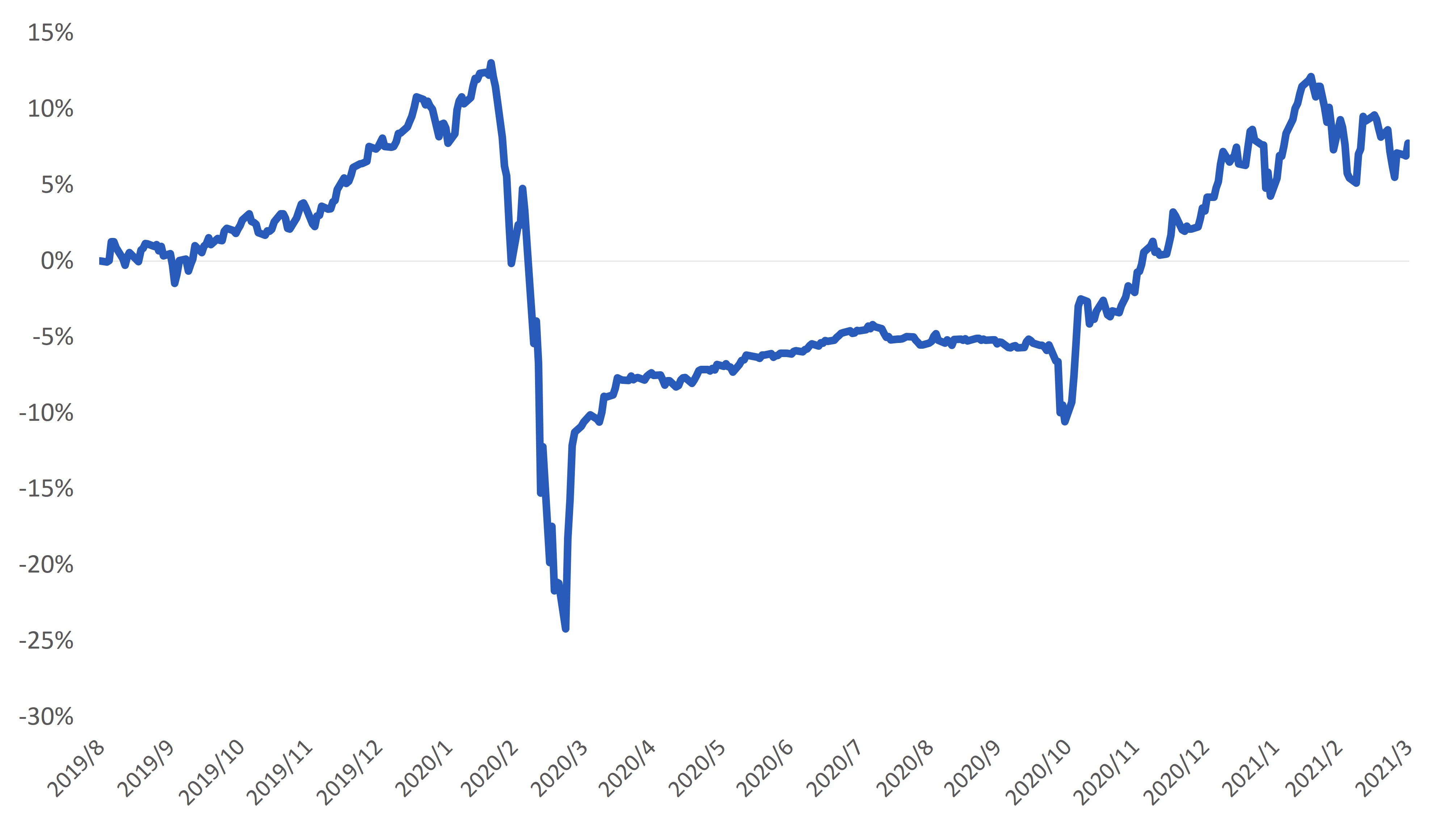 產業輪動,價值股領先:全球經濟活動持續回溫,且殖利率揚勢稍退,股市三月重回漲市,但投資人持續關注價值股與先成長股的資產輪動議題、美國紓困等政策刺激措施,以及市場對於美國公債殖利率攀升的反應。