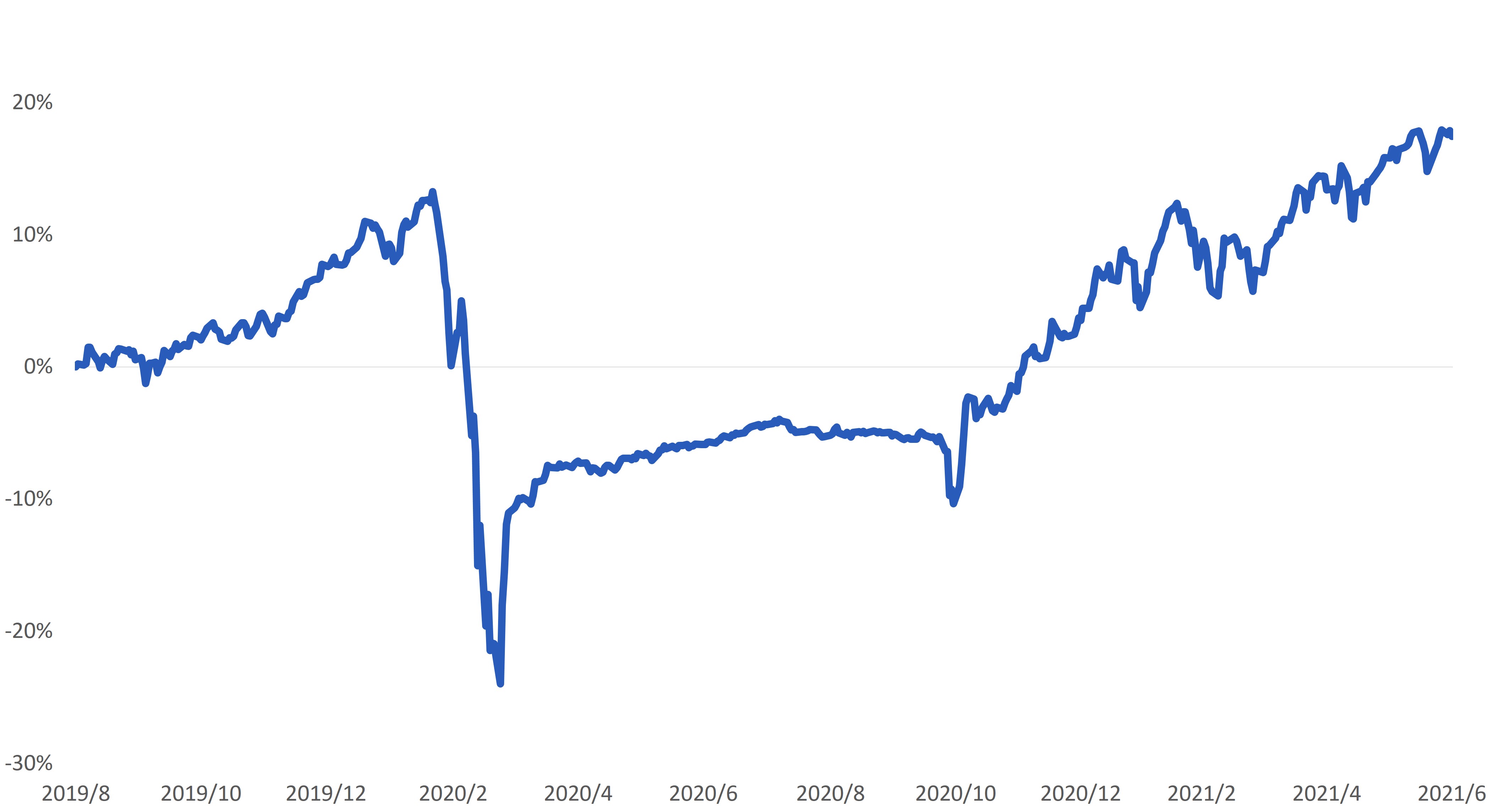 疫苗施打率佳,經濟持續復甦:6月受惠於疫苗持續接種、官方逐步鬆綁活動限制及經濟基本面持續回溫下,消費者、企業及投資人情緒獲得支持。儘管成熟股市漲跌互見,但S&P 500及納斯達克指數連袂創高,加總來看,整體全球股市仍呈現溫漲局面。