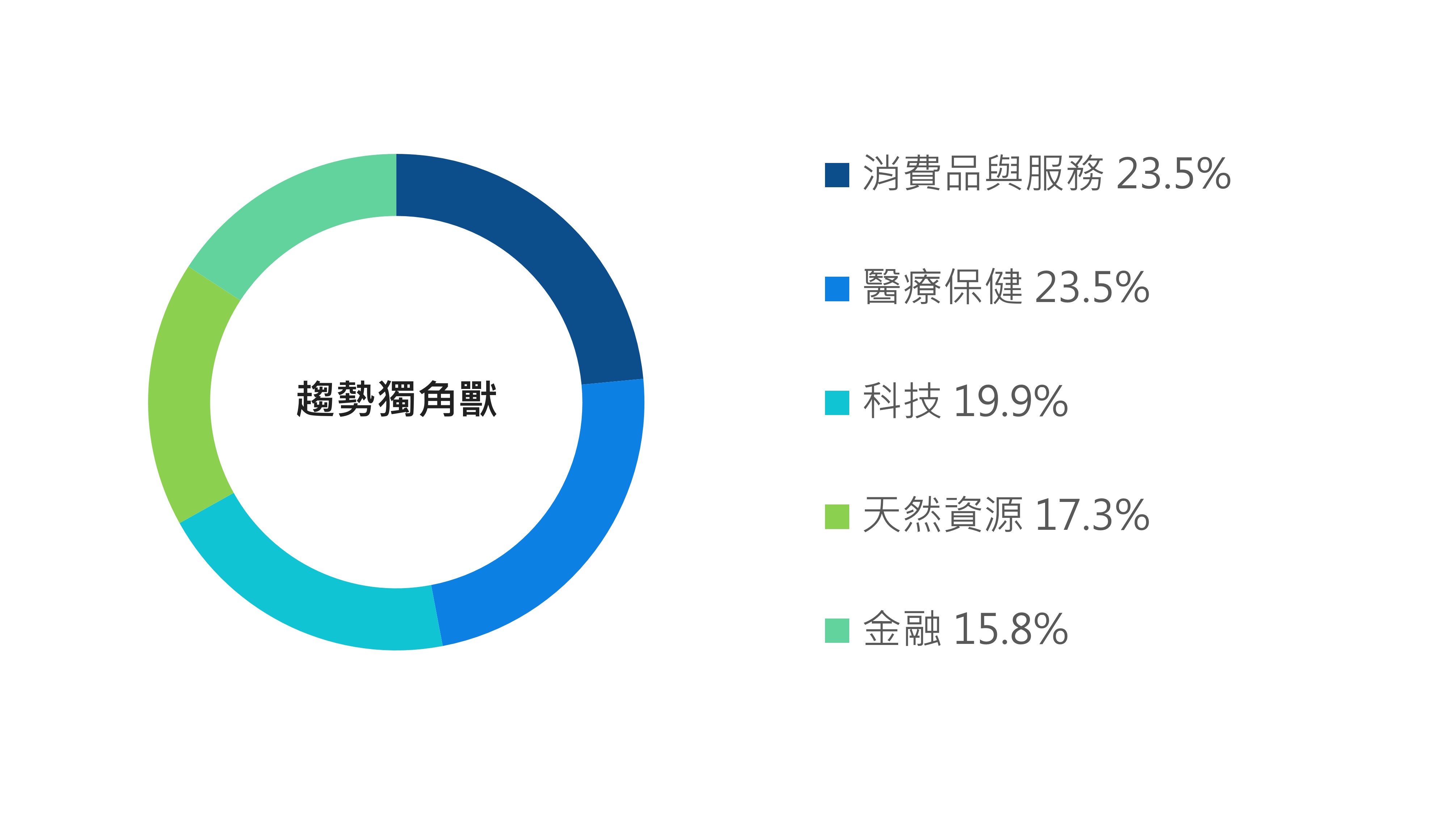 聚焦消費復甦及高評價板塊:股市的未來觀察焦點將集中在消費力道復甦、股市本益比評價差異,以及經濟成長在財政刺激政策與企業增稅間如何取得平衡。「趨勢獨角獸」投資組合多元配置消費與服務、醫療保健、科技等類股,將有望持續提供長期報酬。
