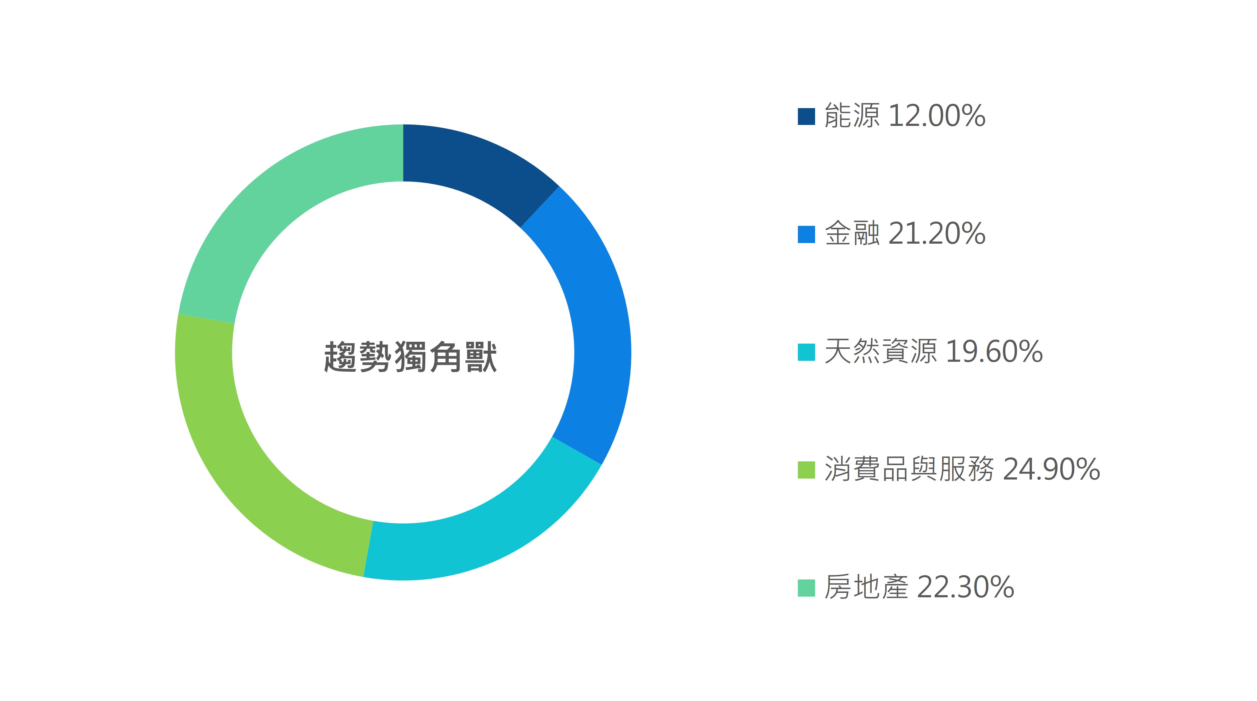 投資組合配置採用復甦指標篩選資產類別,於7月份新增「能源」及「房地產」類別。7月份整體績效為 -0.59%,主要受「能源」、「金融」及「消費品與服務」類別表現較弱影響,然「科技」及「房地產」類別強勁的表現,則為投資組合帶來正向幫助。