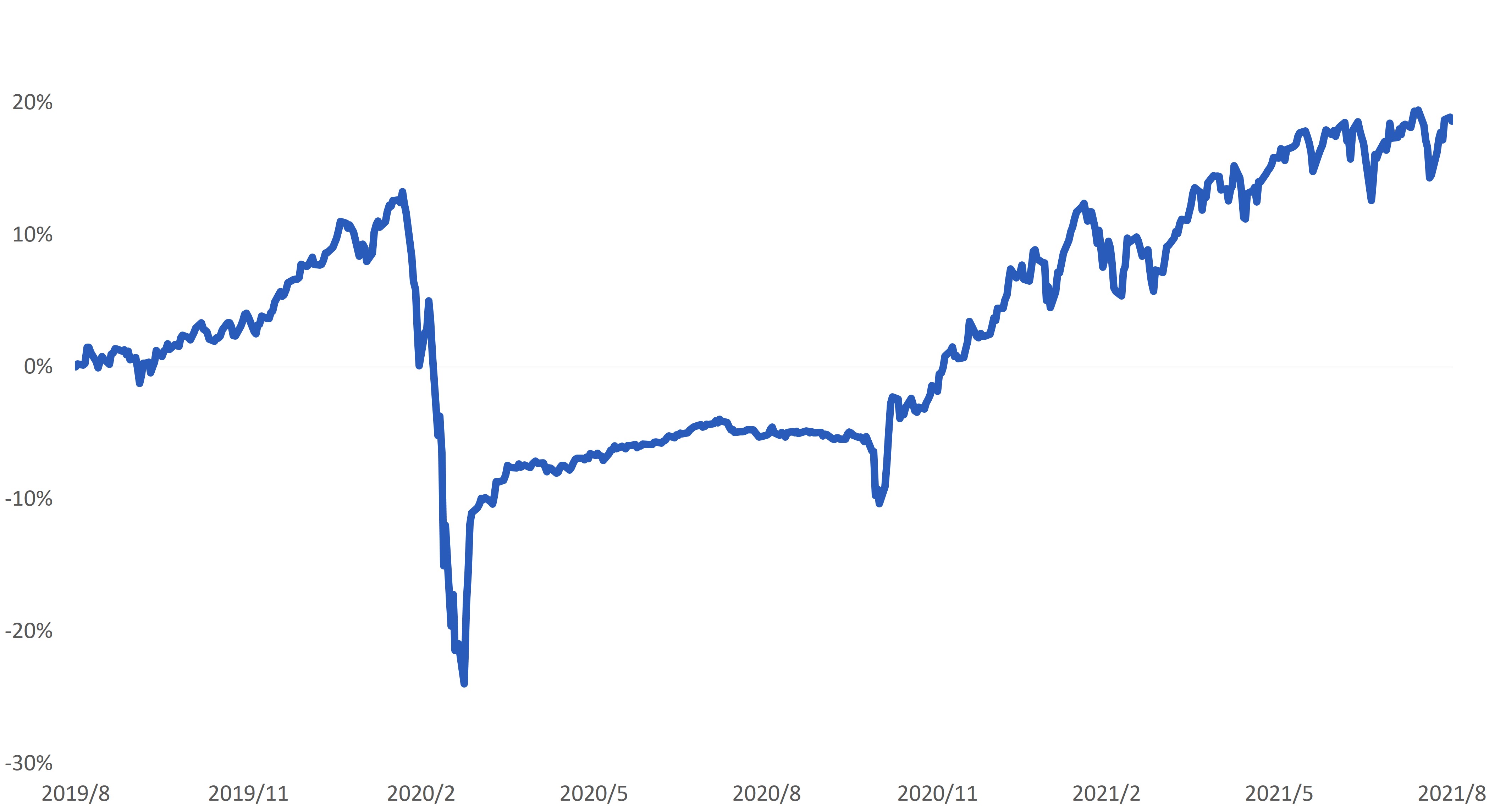 8月份整體績效為1.24%,主要受「能源」及「消費品與服務」類別表現較弱,然「金融」及「房地產」類別強勁的表現,則為投資組合帶來正向幫助。